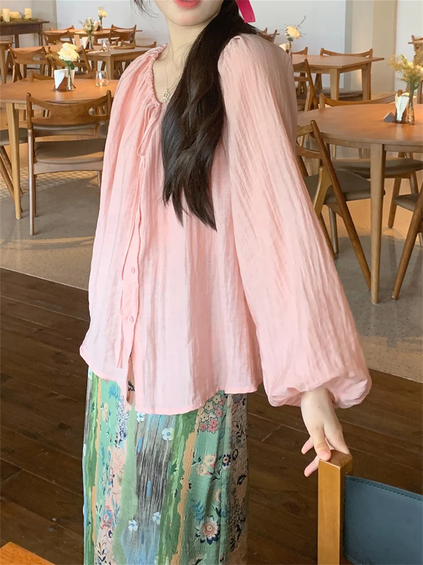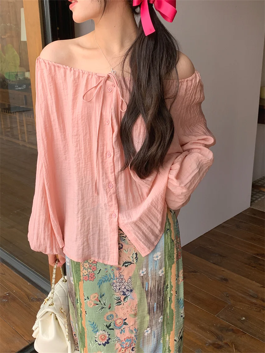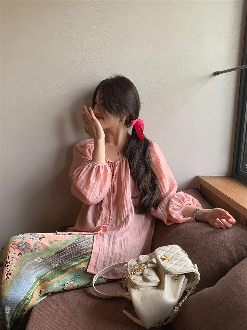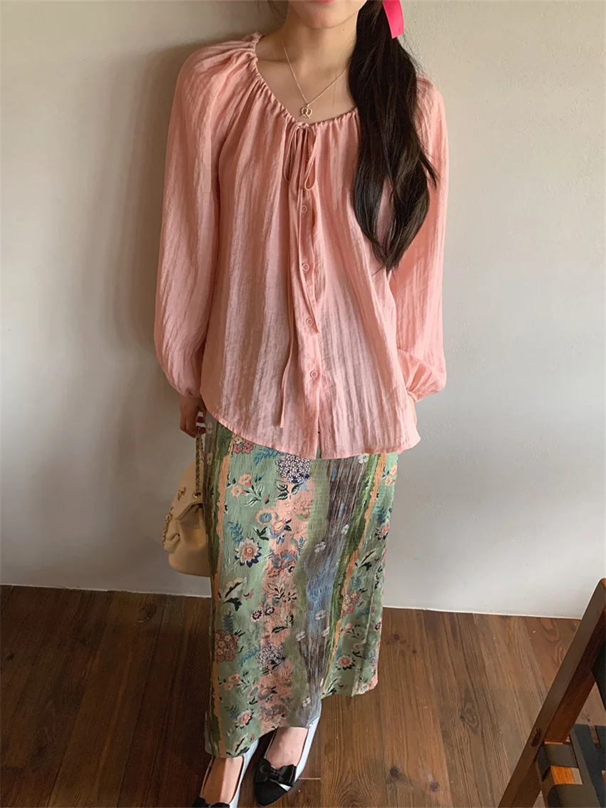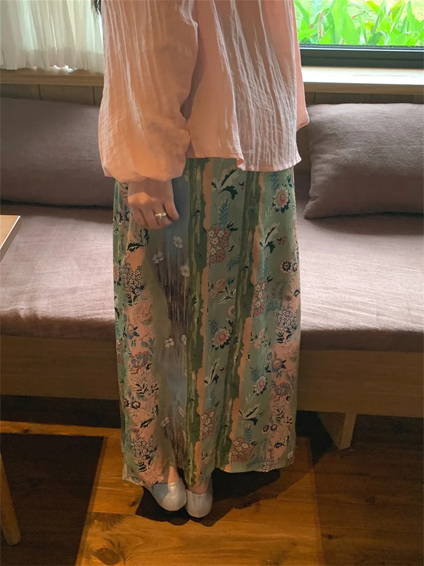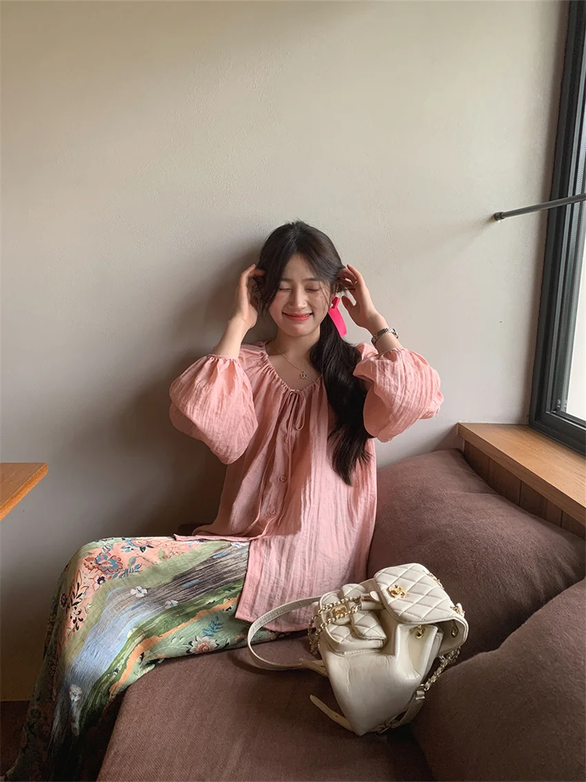 LIZAKOSHT - Fashion Sweet Vacation Blouses Women Sunscreen Loose 2024 Printed Maxi Skirts Florals Summer Chic Casual Office Lady