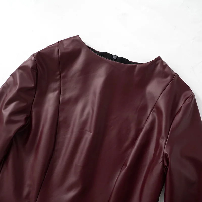 LIZAKOSHT - Fashion Women PU Leather Shirt Bustiers Tops Long Sleeve Slim T-Shirts Party Lady WineRed Leather Shirt Corset Top Autumn Winter