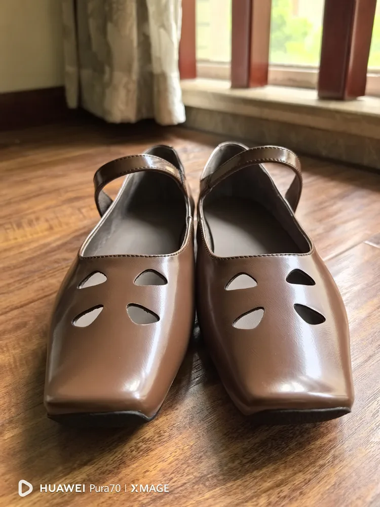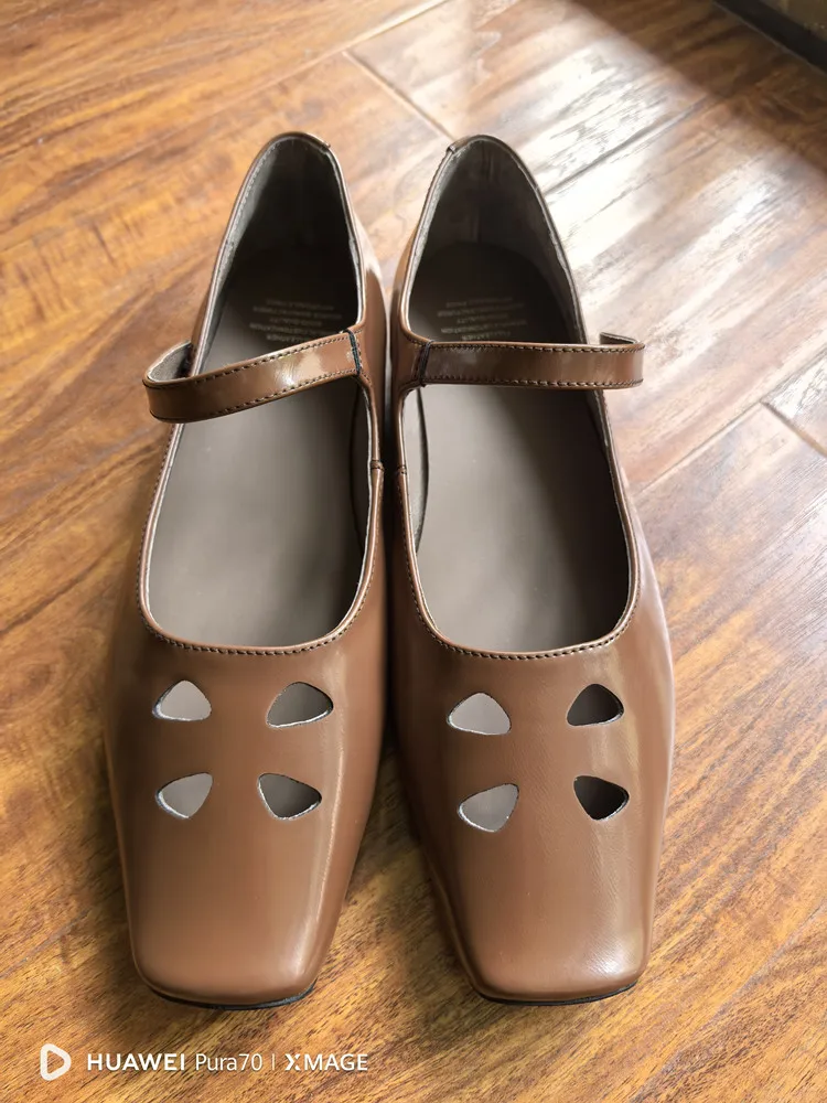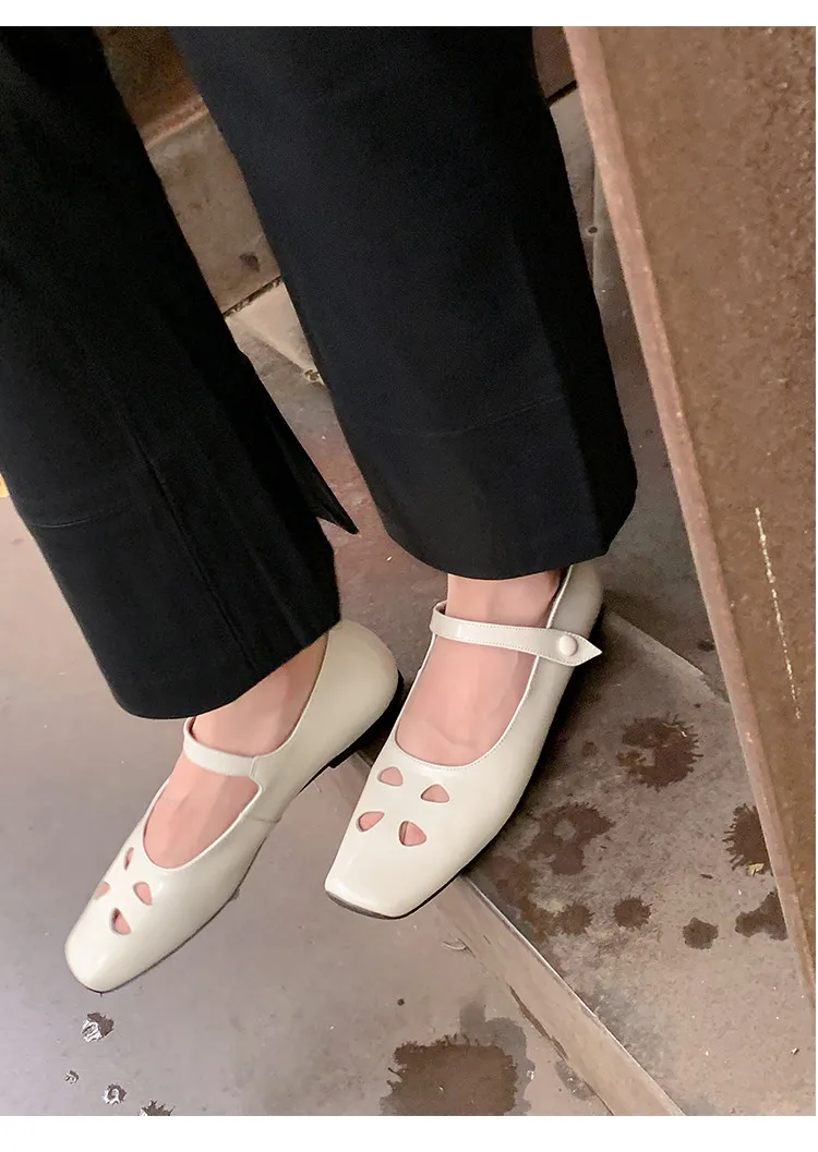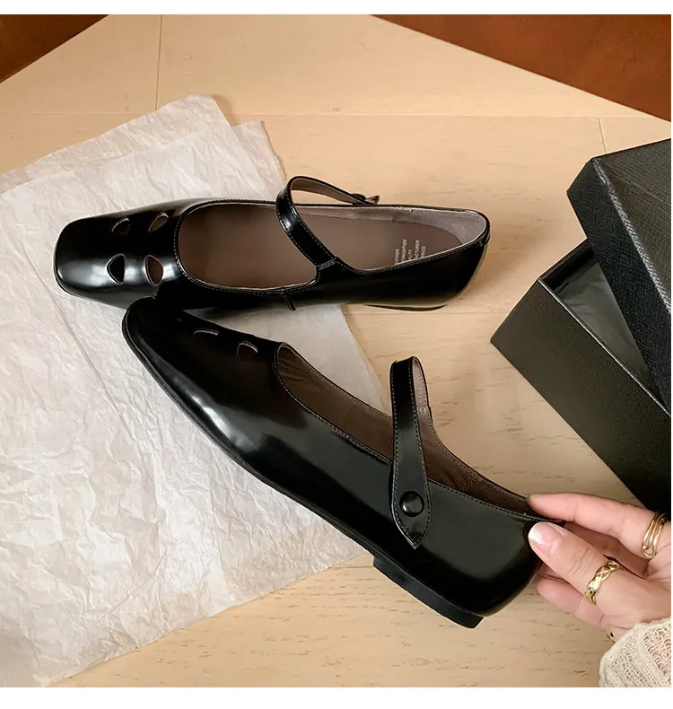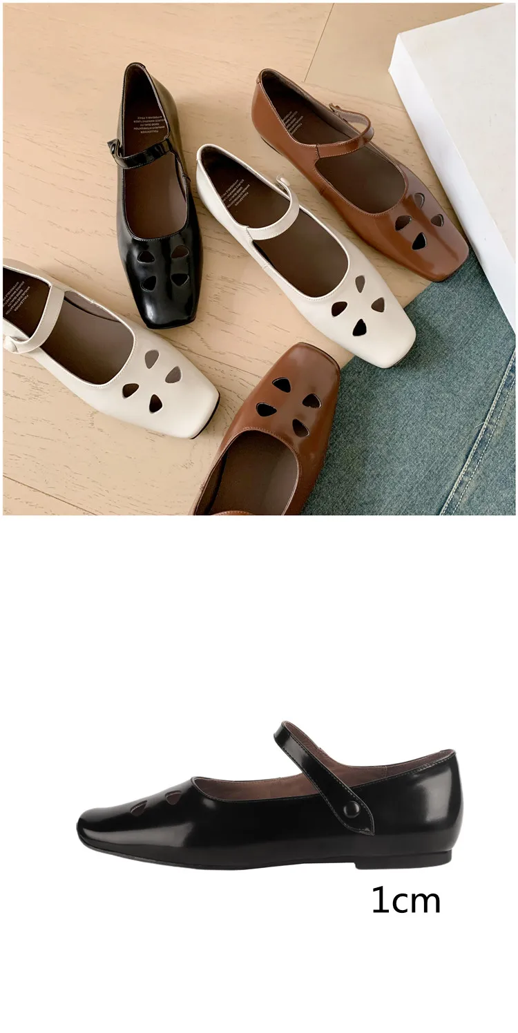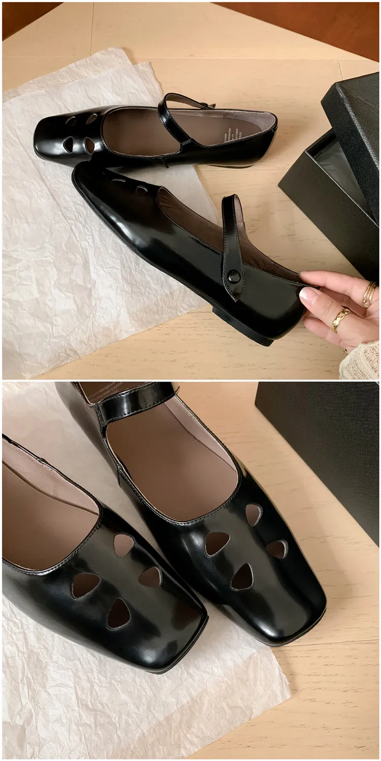 LIZAKOSHT - Fashion Women Shoes New High Quality True Leather Hollow Square Head Flat Bottom Mary Janes Shoes Daily Lightweight Shoes