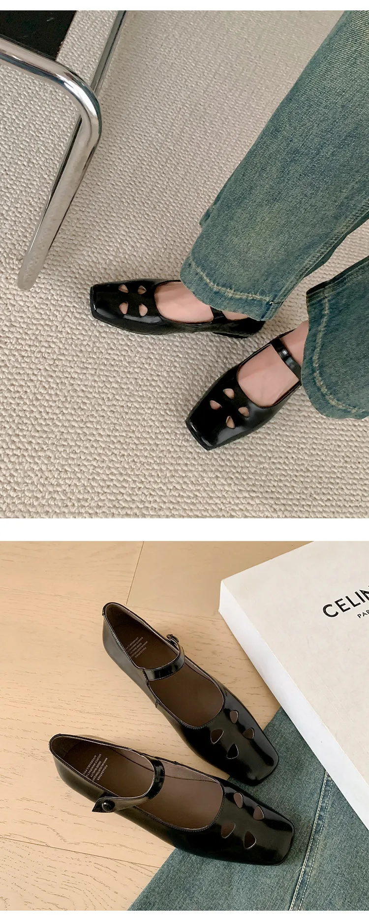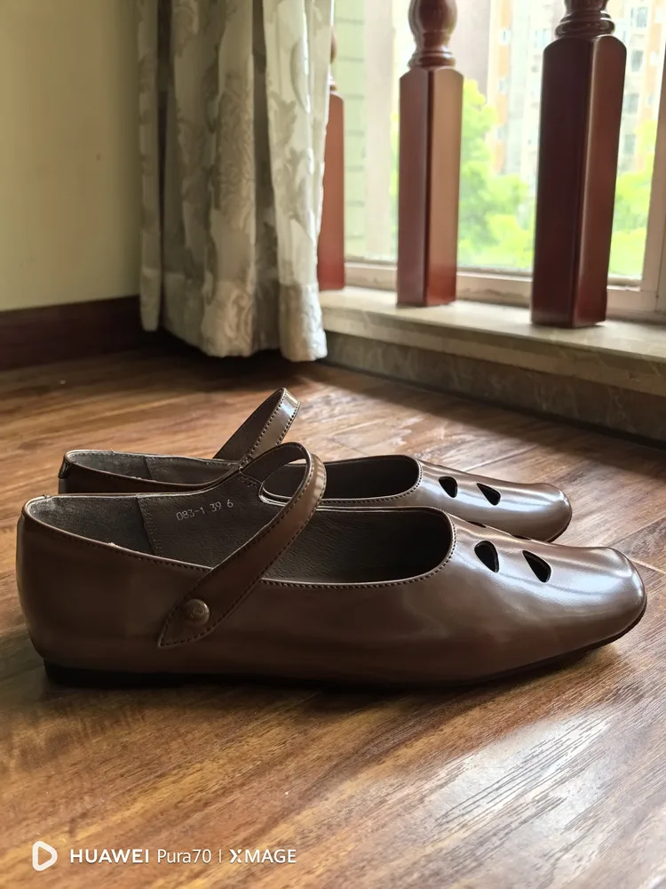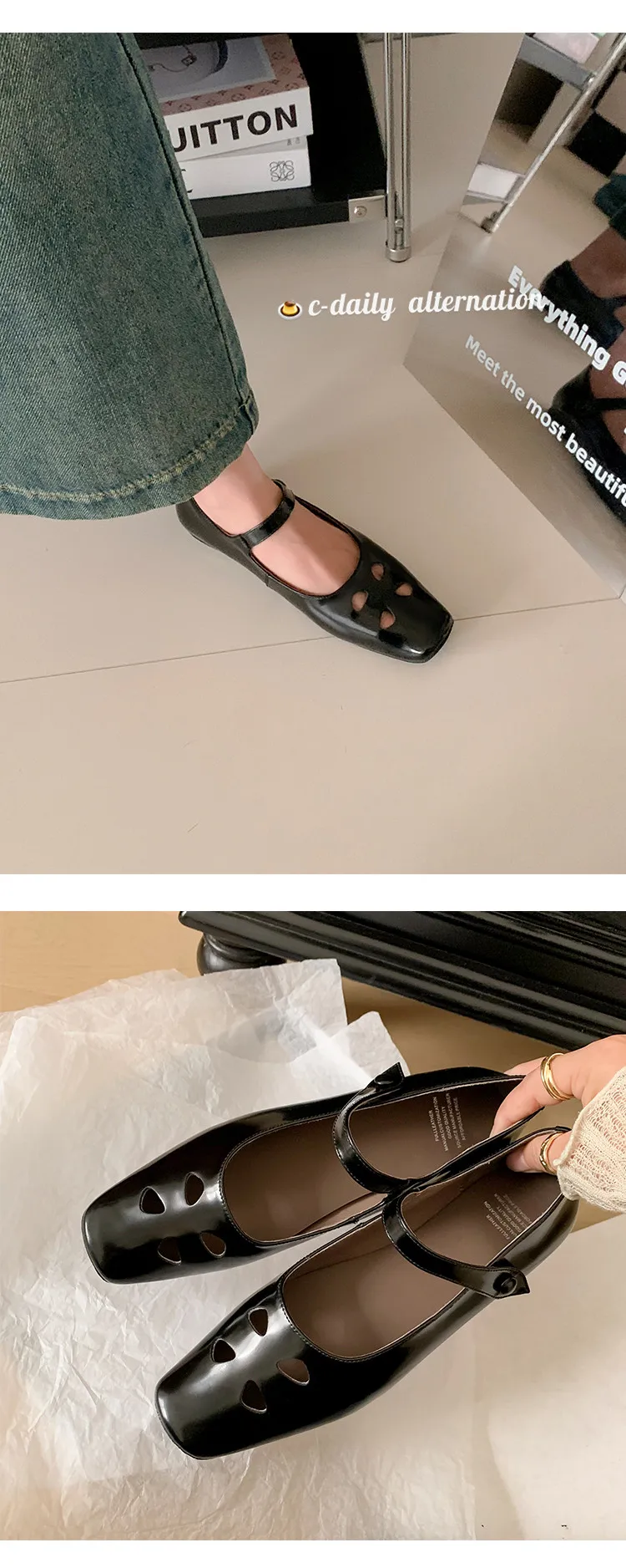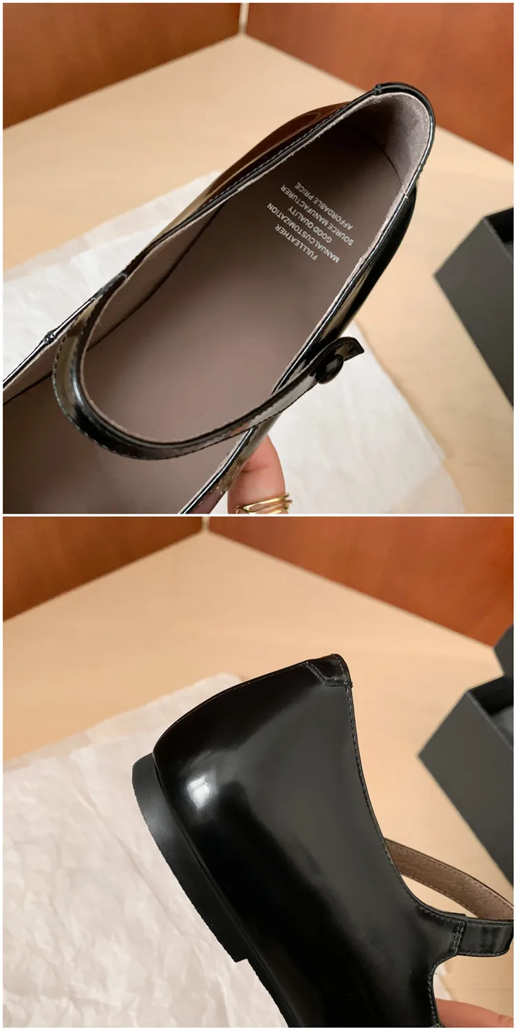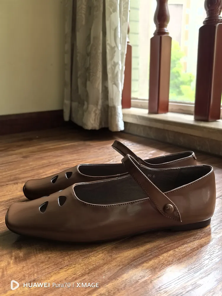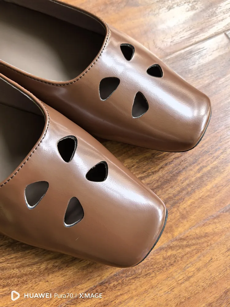 LIZAKOSHT - Fashion Women Shoes New High Quality True Leather Hollow Square Head Flat Bottom Mary Janes Shoes Daily Lightweight Shoes
