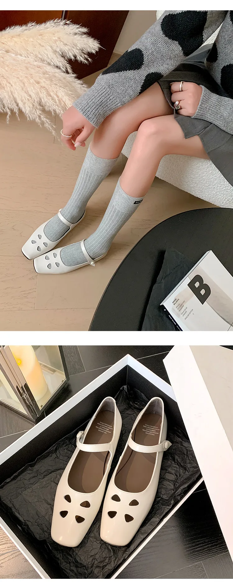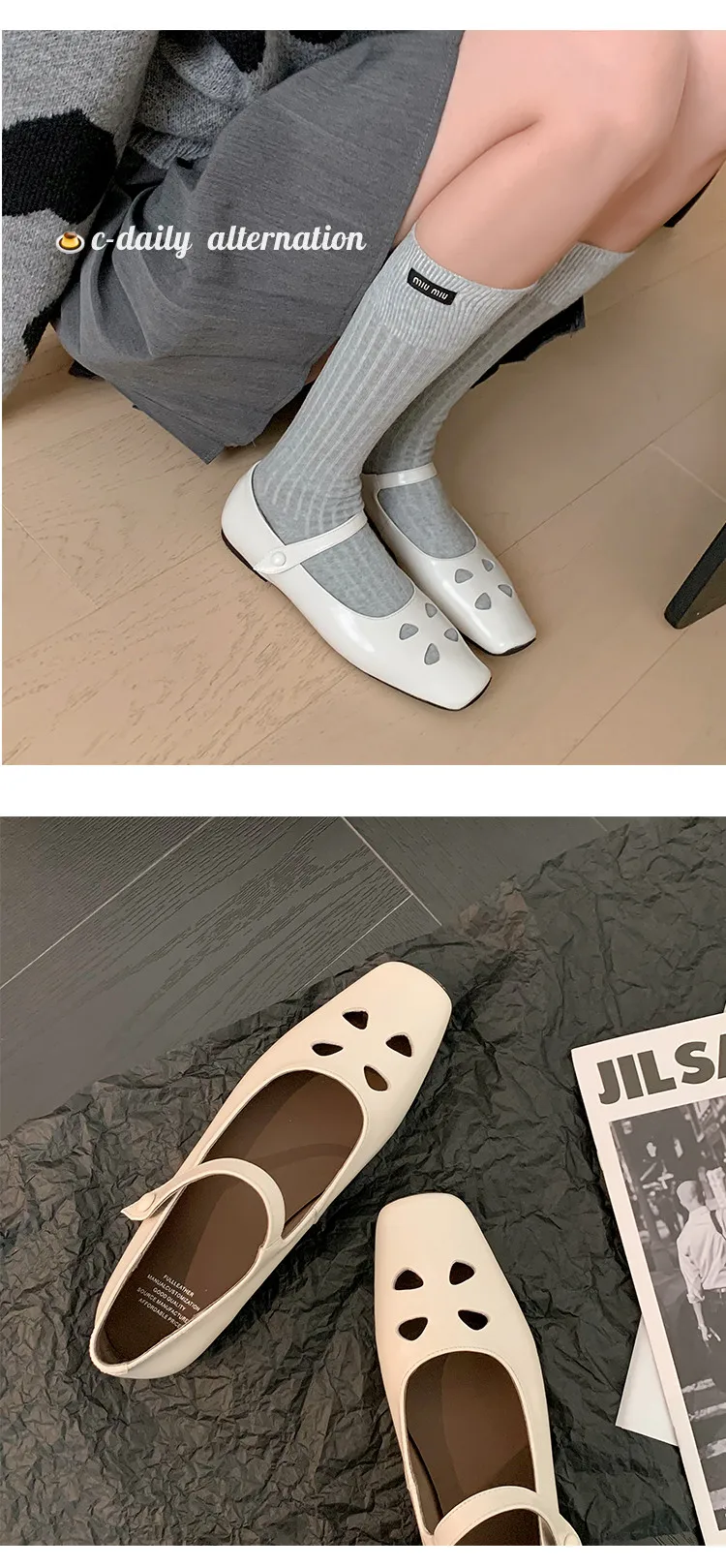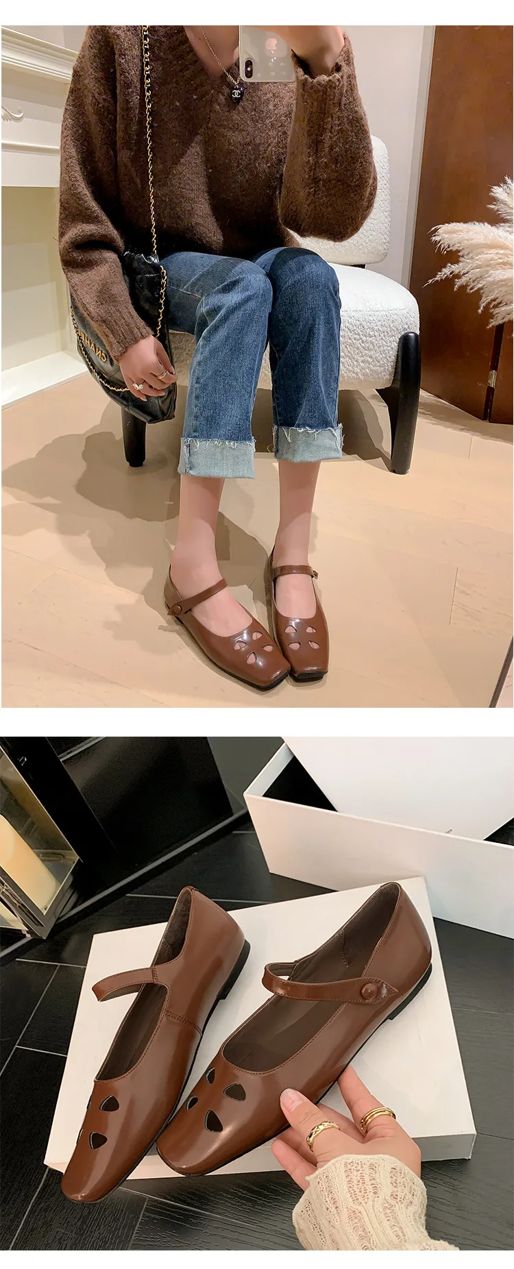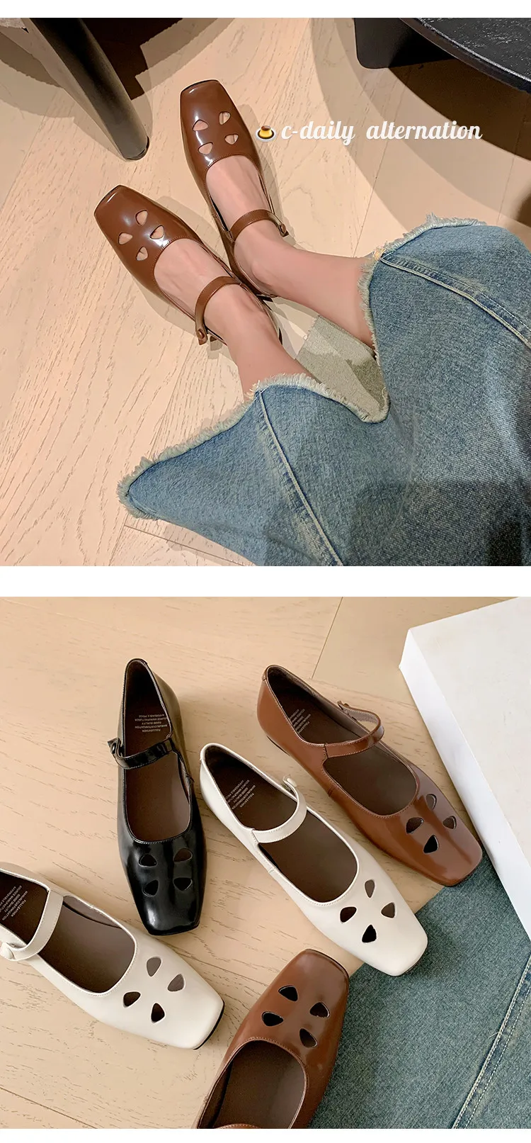 LIZAKOSHT - Fashion Women Shoes New High Quality True Leather Hollow Square Head Flat Bottom Mary Janes Shoes Daily Lightweight Shoes
