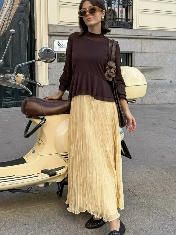 LIZAKOSHT  -  Fashion Women's Pleated Skirts 2025 Summer Chic Causal Elastic Waist Solid Skirts Sweet Ladies High Street Skirts