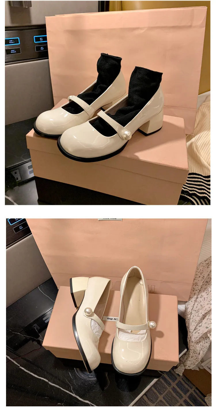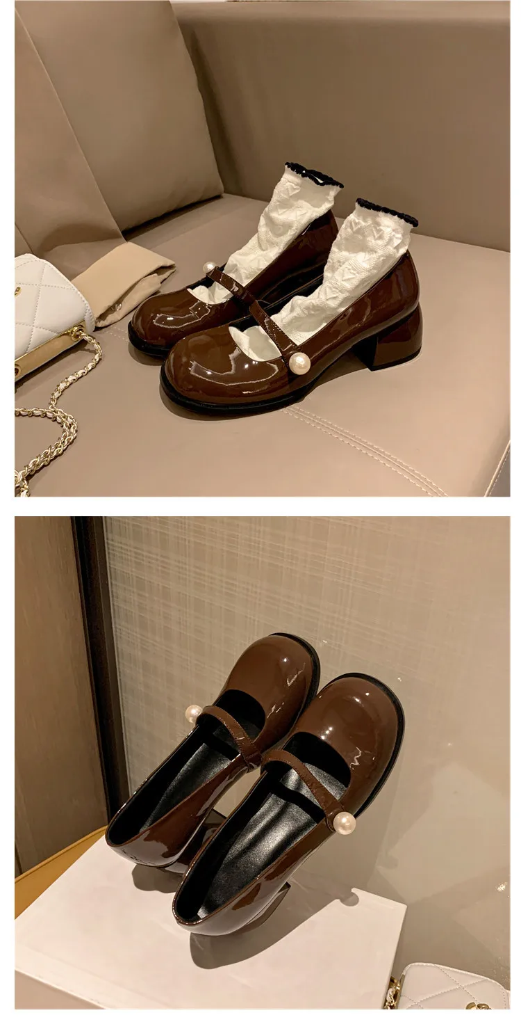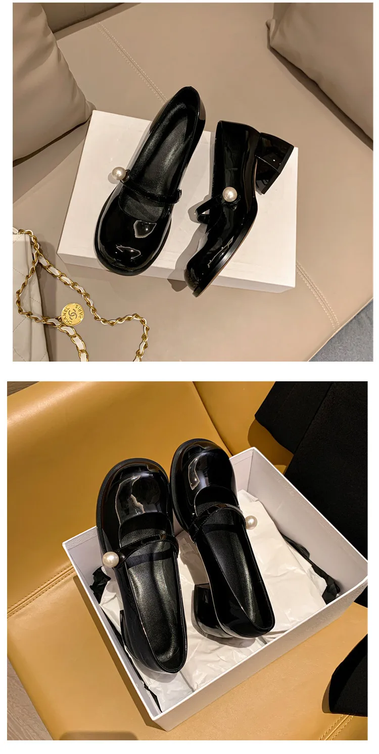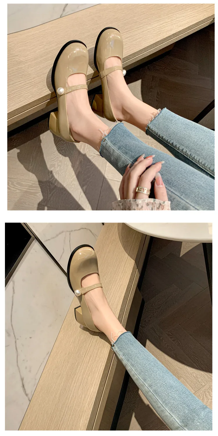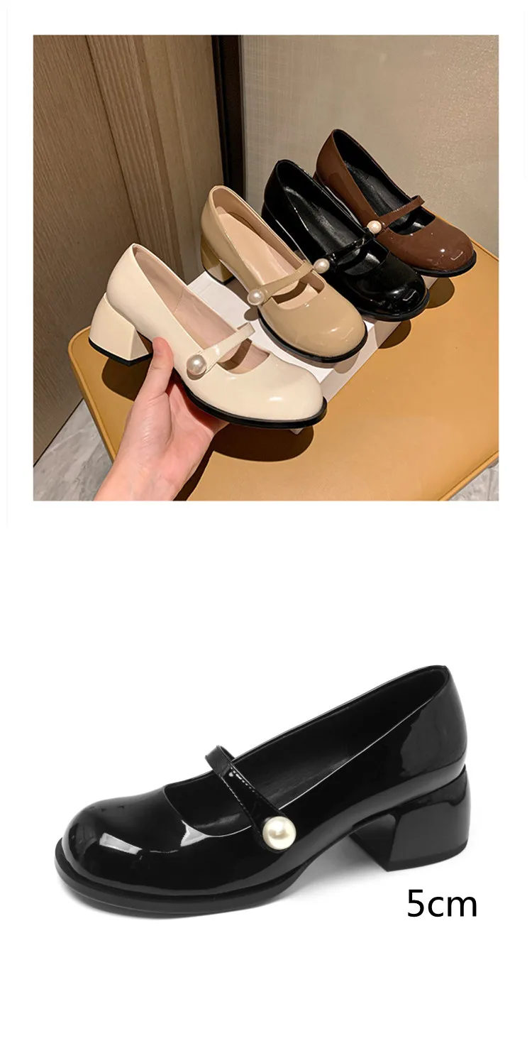 LIZAKOSHT - Fashion Women's Shoes New High Quality Genuine Leather Round Head Middle Heel Shoes Simple Sweet Mary Janes Shoes