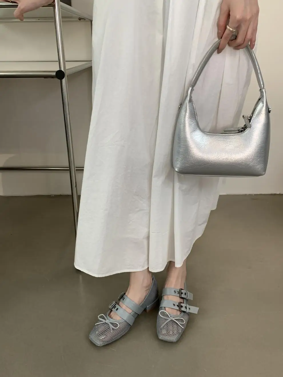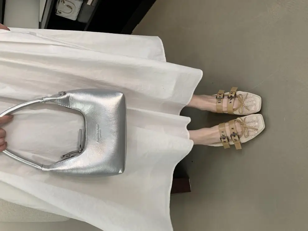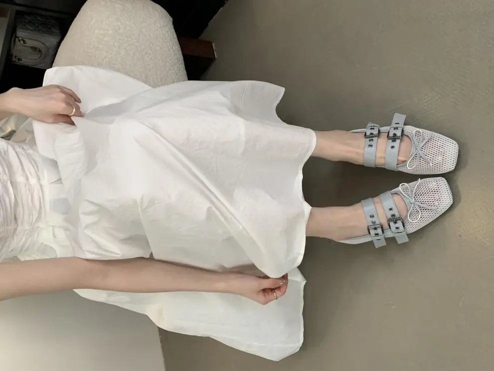 LIZAKOSHT - Fashions Mesh Ballet Flat Shoes Women Belt Buckle Square Toe Loafers New Casual Comfy Hollow Bow Designer Mary Jane Pumps