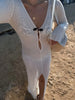 LIZAKOSHT - Female Knitwear Hollow Out Long Dress Beach Cover up See-Through Loose Long Sleeve V-Neck Dress Women's Knit Maxi Dress