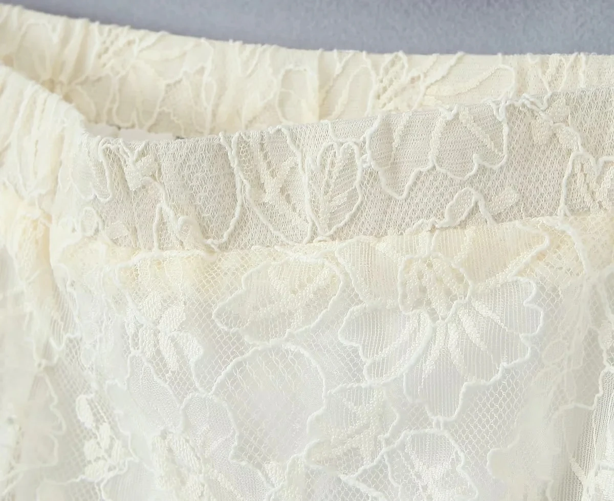 LIZAKOSHT Flower Lace Skirt Women Vintage Ruffle Slit Maxi Party Skirt Faldas Mujer 2024 Fashion New Long Transparent Skirt Bottom