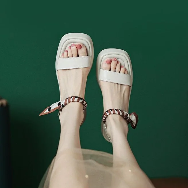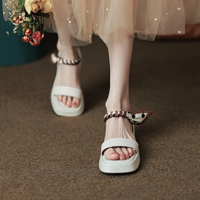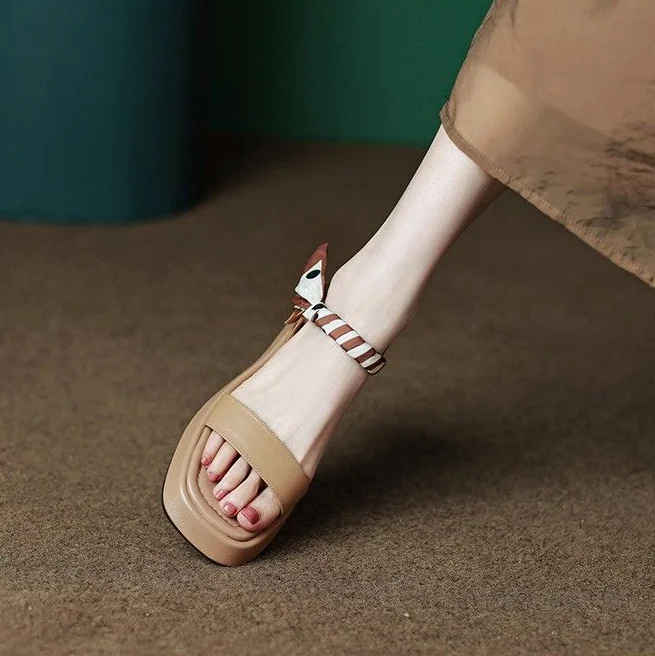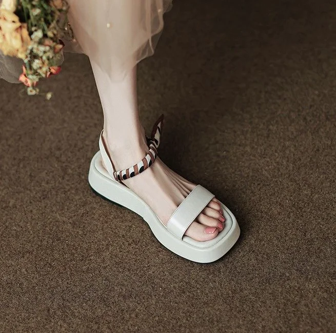 LIZAKOSHT - Footwear Wedge Platform Waterproof Summer One Word Sandals for Women Beige Ladies Shoes Office Work with Medium Heels Sale
