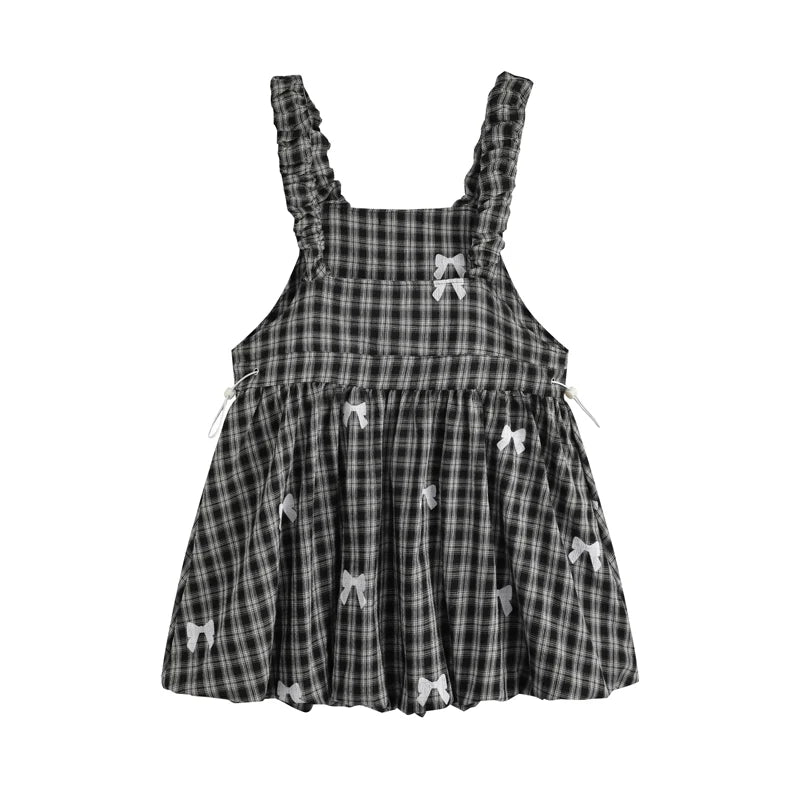 LIZAKOSHT - Free Shiping Pastoral Style Striped Plaid Bowknot Printed Women's Tight Waist Dresses Summer Strappy Ladies Short Dresses