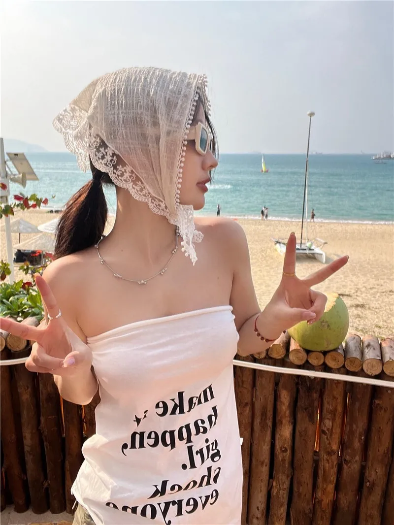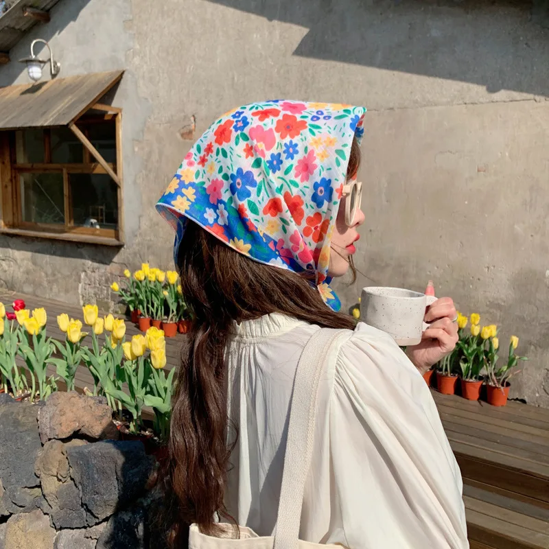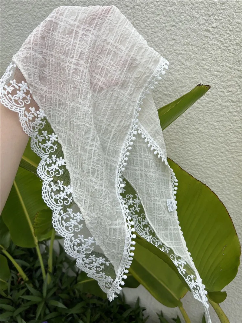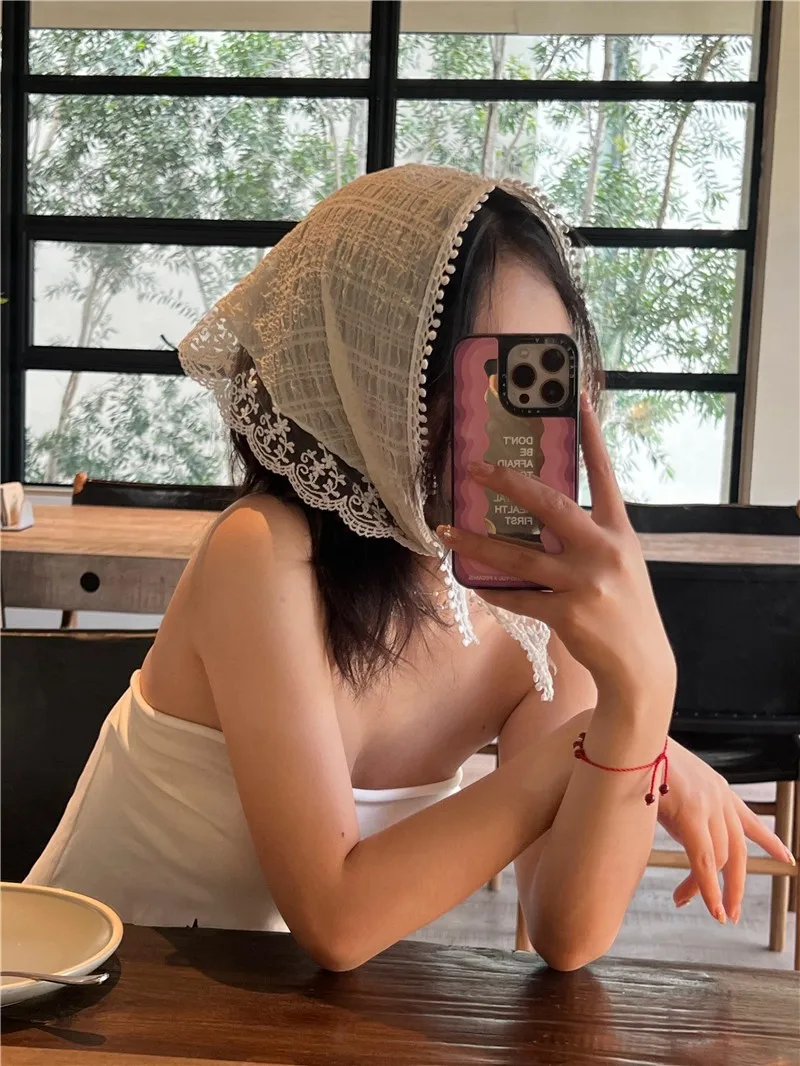 Lizakosht French Lace Triangle Headband Flowers Sunscreen Decorative Headscarf Pastoral Retro Scarves Ribbon Bag Headscarf Hat