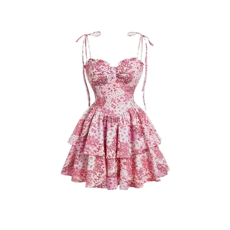 LIZAKOSHT  -  French Summer New Fashion Temperament Beach Lady Sexy Camisole Elastic Waist Mini Dress Floral Short Dresses Casual Y2k Clothes
