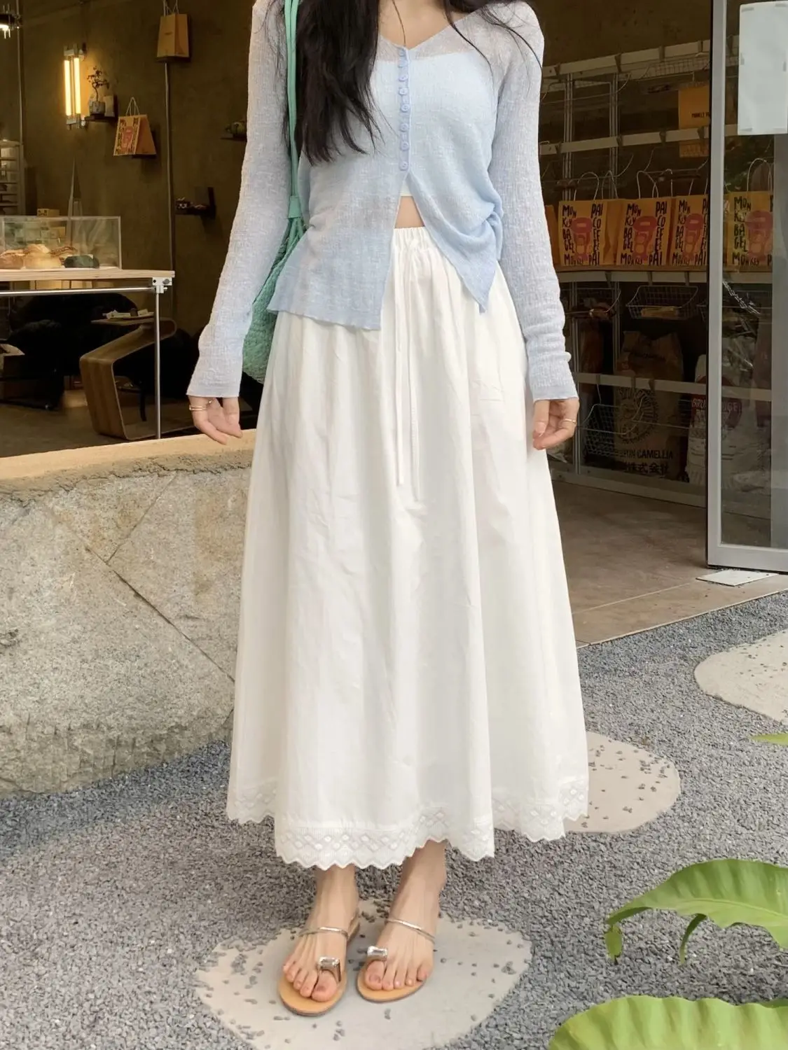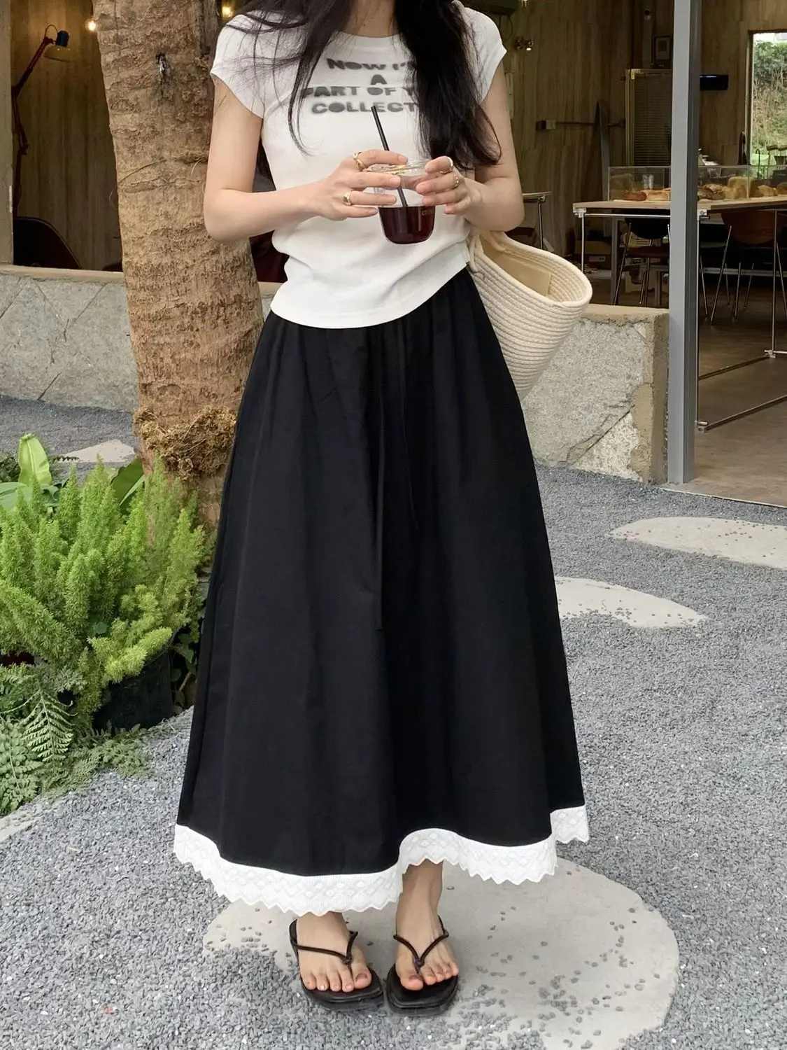 LIZAKOSHT  -  Fresh and Fashionable Lace Lace Splicing Half Skirt Summer New Versatile Loose High Waist Long Skirt