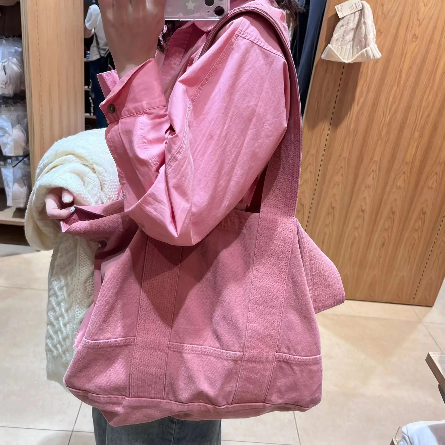 LIZAKOSHT - Girls Pink Sweet Kawaii Tote Bags Y2k Aesthetic Japanese Streetwear Handbags Fashion Women Casual Simple Shoulder Underarm Bag