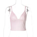 LIZAKOSHT - Girls Summer Deep V-neck Plaid Camisoles Y2K Woman Clothing Sexy Sleeveless Backless Crop Tops Pink Corset Streetwear