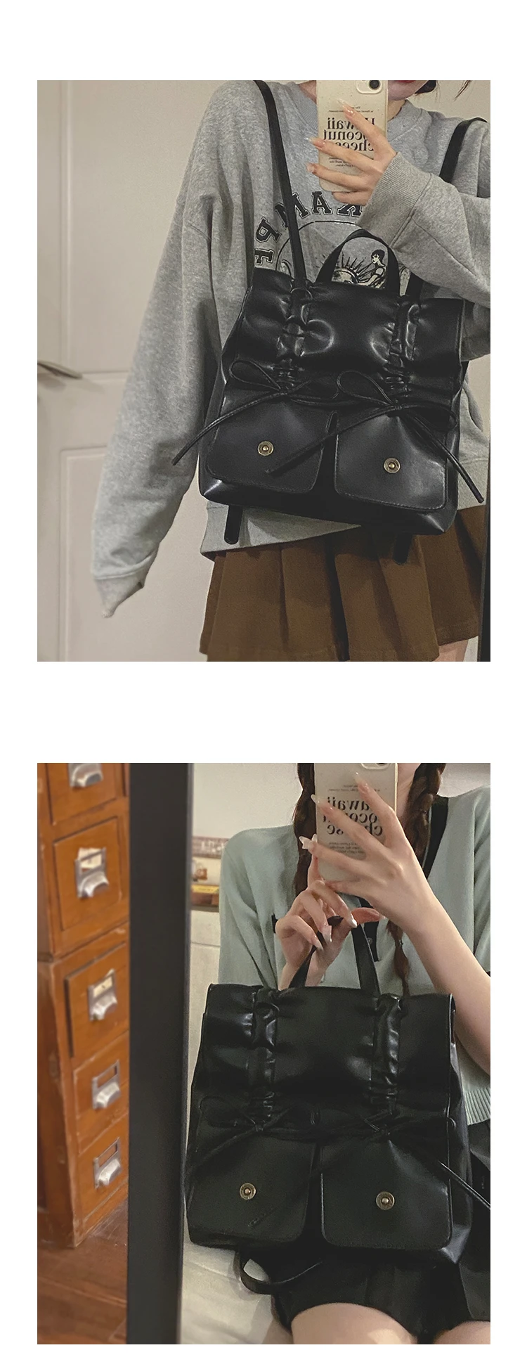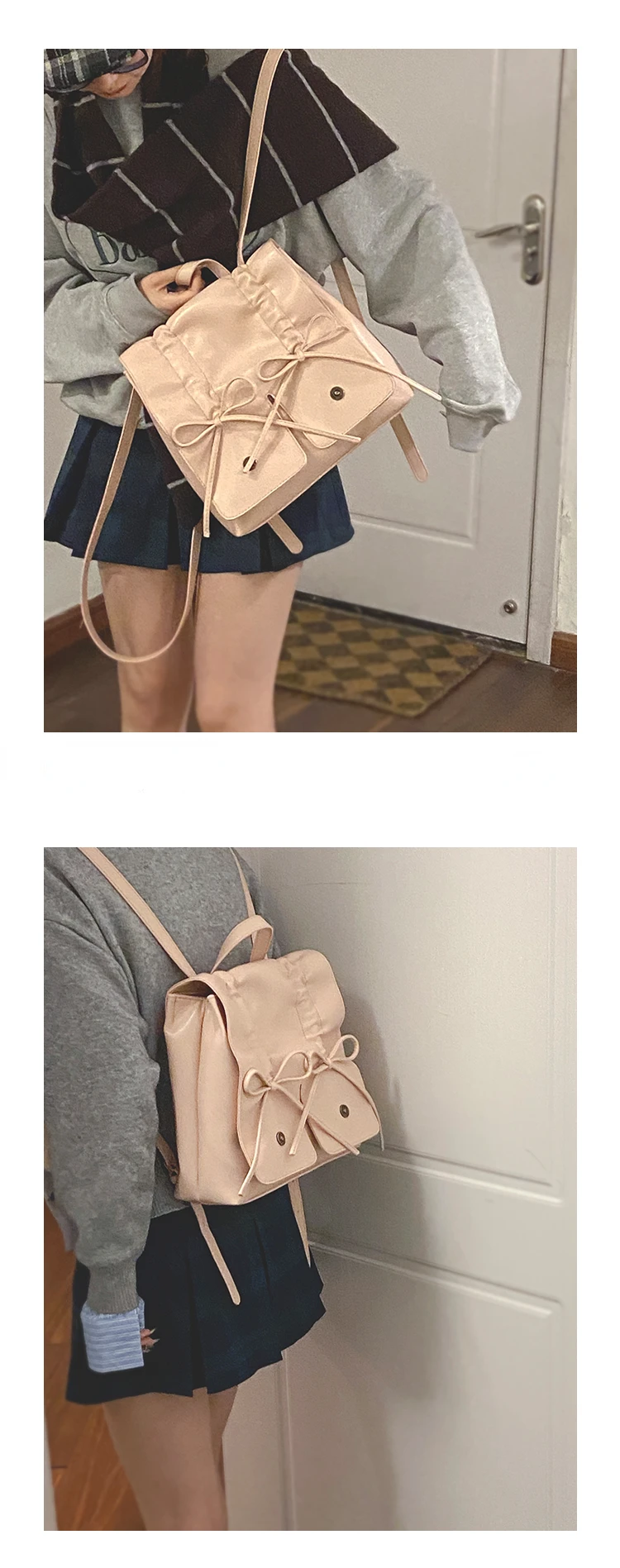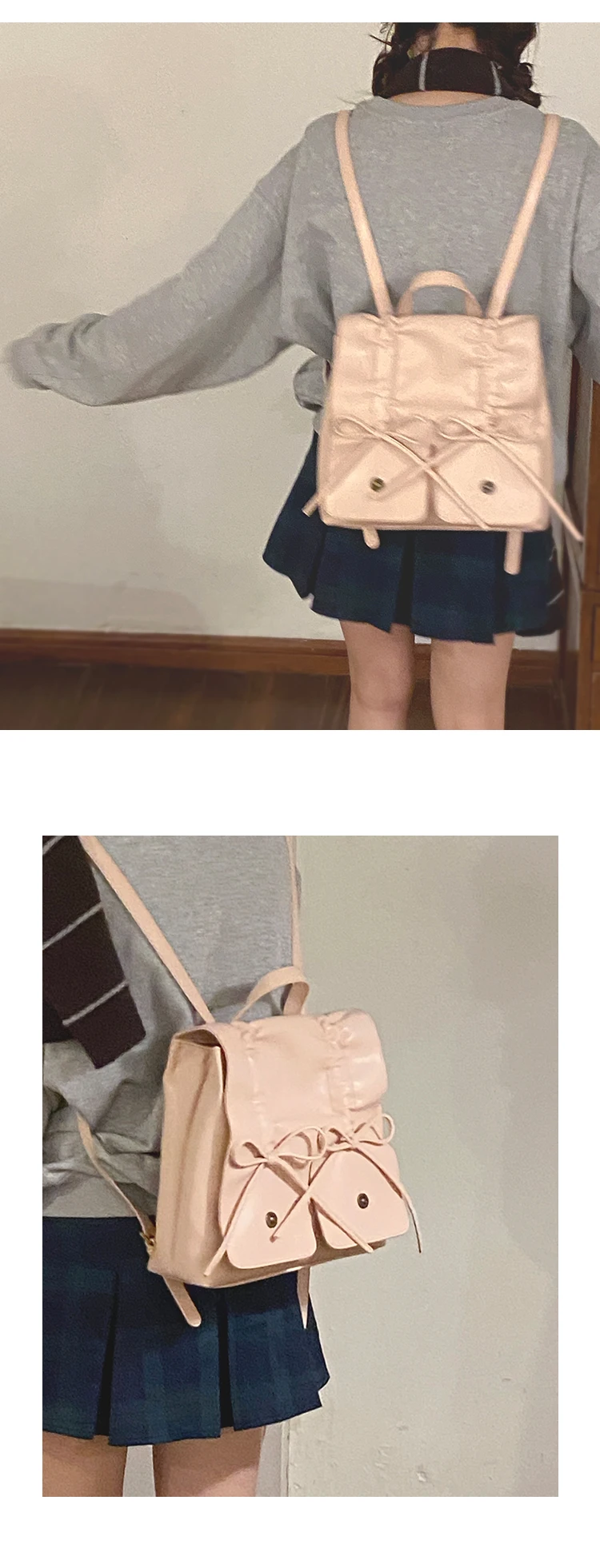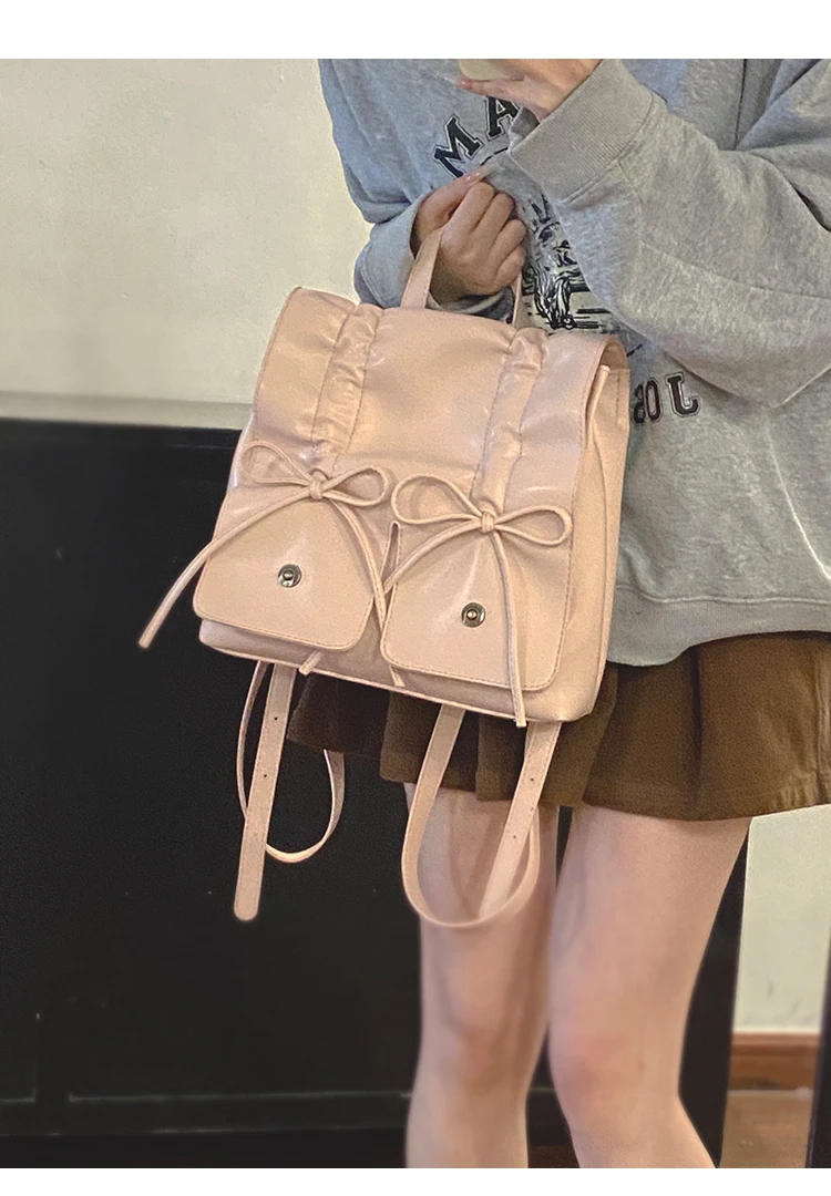 LIZAKOSHT - Girls Sweet Y2k Aesthetic Bow Preppy Backpack All Match Ins Pleated Fashion Backpack Casual Women Students Schoolbags Japanese