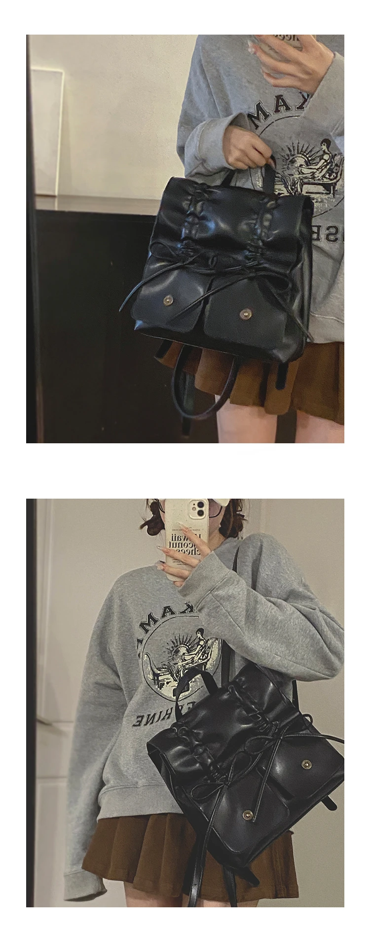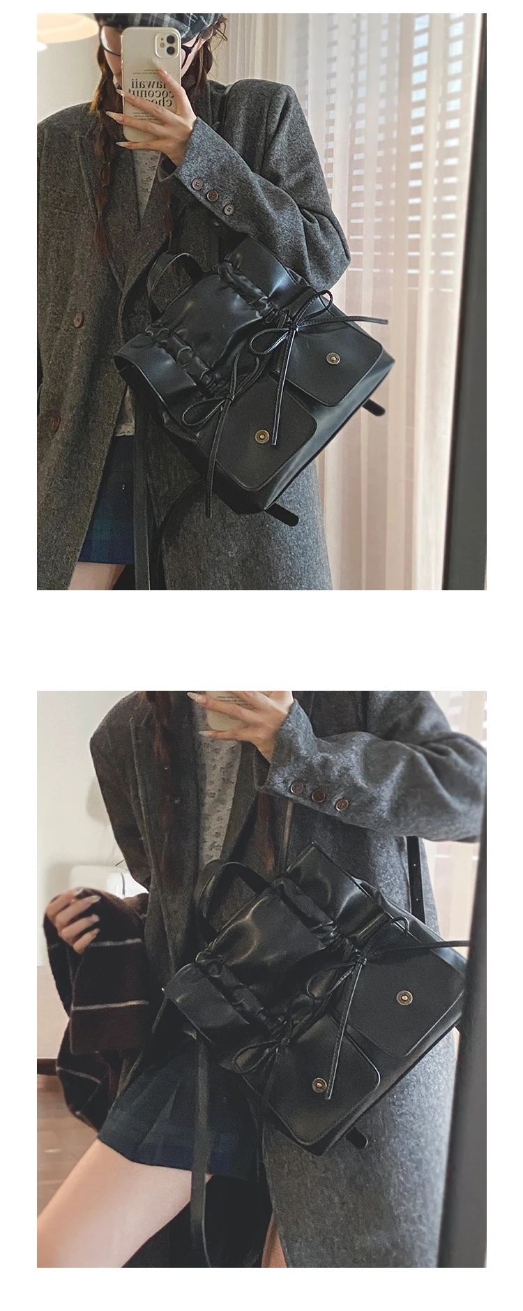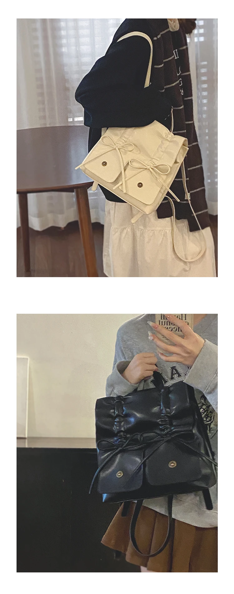 LIZAKOSHT - Girls Sweet Y2k Aesthetic Bow Preppy Backpack All Match Ins Pleated Fashion Backpack Casual Women Students Schoolbags Japanese