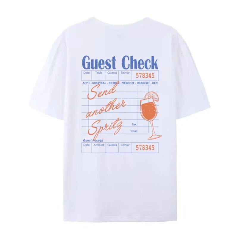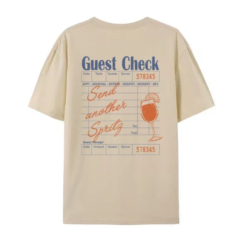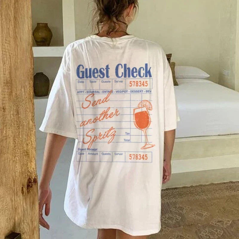 LIZAKOSHT  -  Guest Check Spritz Back Print T-Shirts Funny Cocktail Lover T Shirt Loose Cool Y2k Graphic Tees Unisex Summer Vintage Women Tops