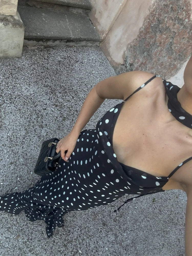 LIZAKOSHT  -  Halter Scarf Polka Dot Dress Pile Collar Slim Fit Suspender Lady Robes Beach Wrap Hip Fishtail Women's Camisole Long Dresses