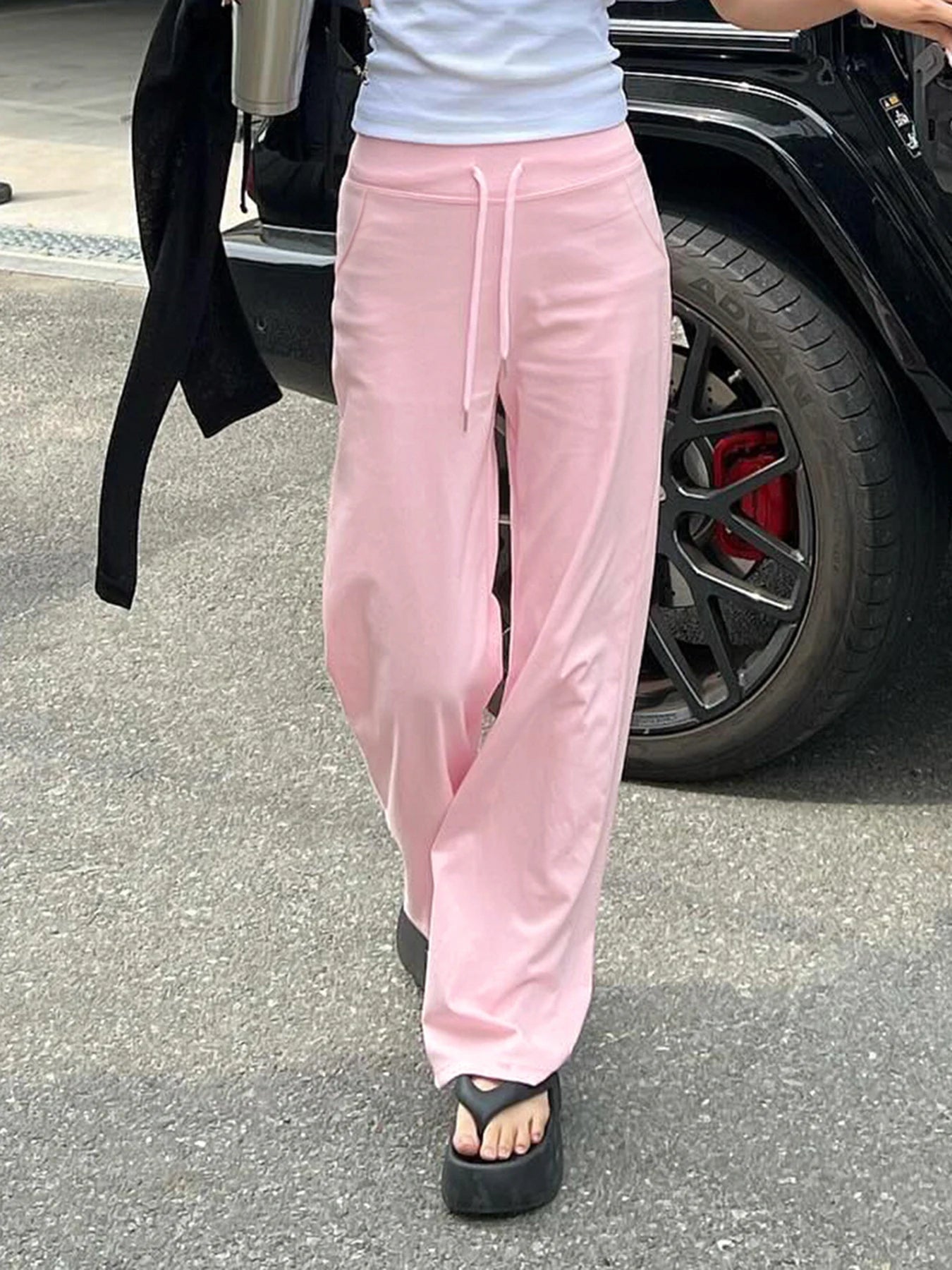 LIZAKOSHT - Harajuku Casual All Match Sweatpants Y2k Streetwear Elastic High Waist Drawstring Wide Leg Trouser Korean Chic Clothes