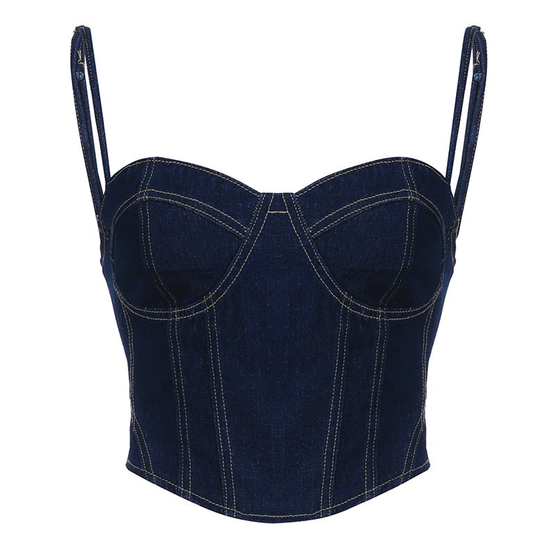Lizakosht Harajuku Denim Camisoles Women Summer Single-Breasted Vest Tank Tops Lace Up Back Punk Vest Streetwear Jeans Cropped Tops