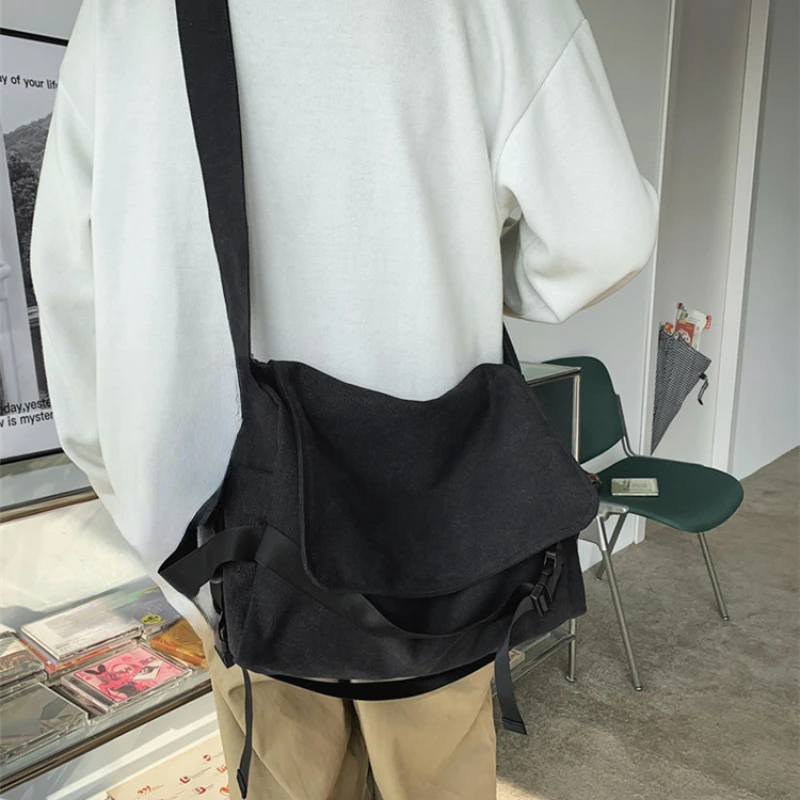 LIZAKOSHT - High-capacity Vintage Men Casual Messenger Bags All Match Y2k Aesthetic Women Shoulder Bag New Trendy Simple Handbags Crossbody