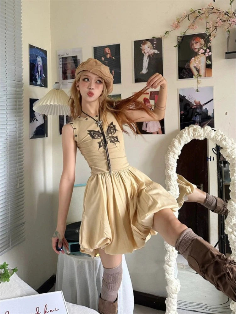 LIZAKOSHT - Hikigawa Summer Causal Women Dress All Match Bufferfly Print Dresses Sleeveless Sexy Chic Fashion Elegant Vestido De Mujer