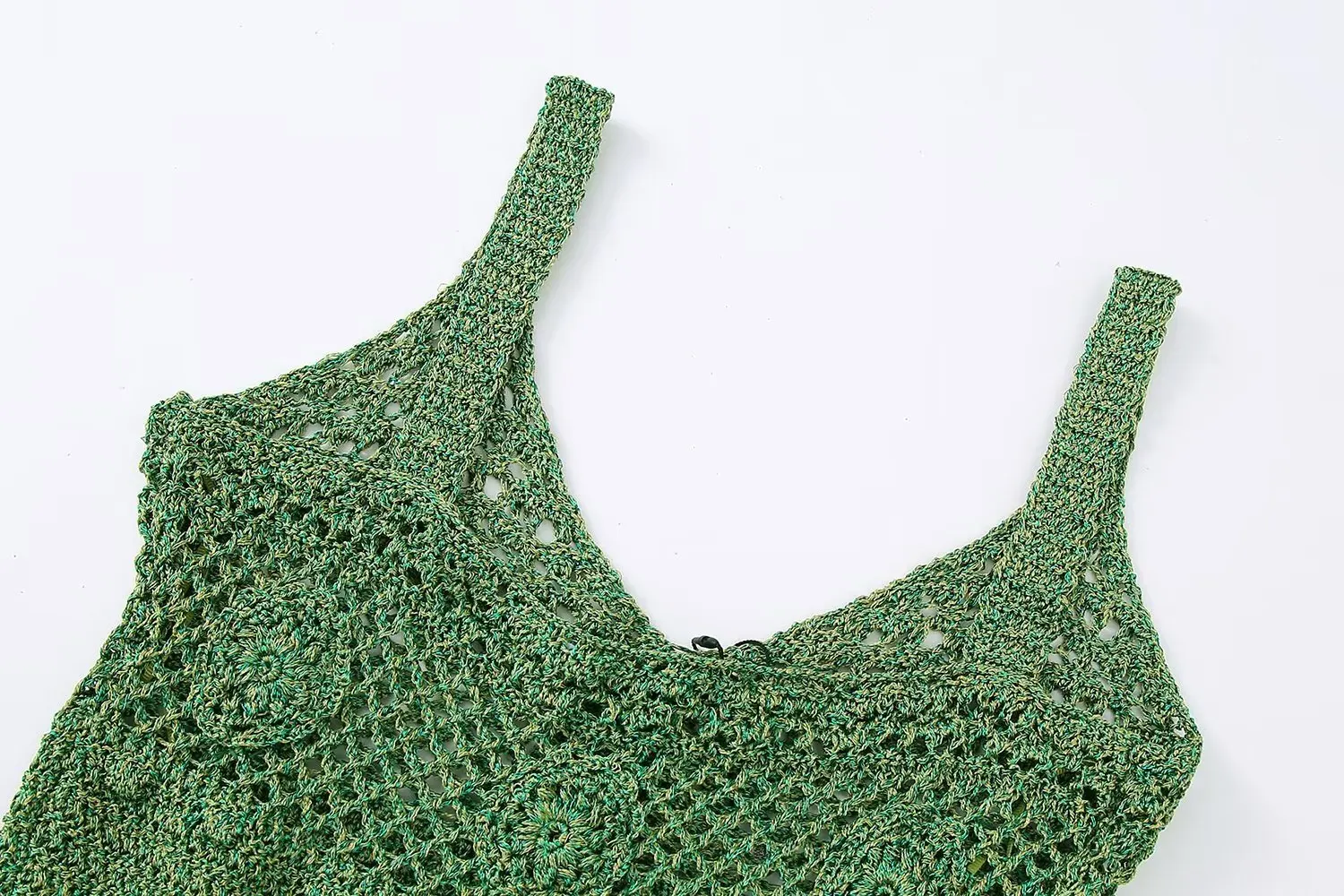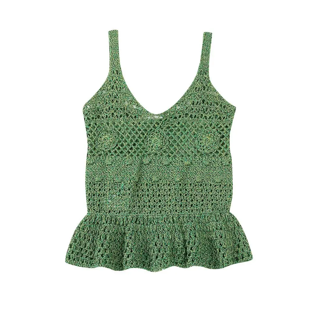 Lizakosht Hollow Out Crochet Jacquard Tank Top for Woman Sleeveless V-Neck Knitted Vest Solid Vintage Boho Summer Beach Holiday Camis Tops