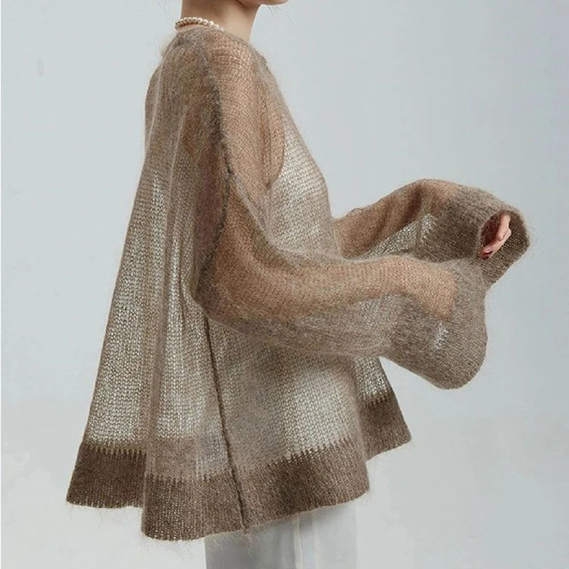 LIZAKOSHT  -  Hollow Out Pullovers Women Loose O-neck Long Sleeve Knit Sweaters Female 2025 Spring Shinny Chic Evening Shirts Lady