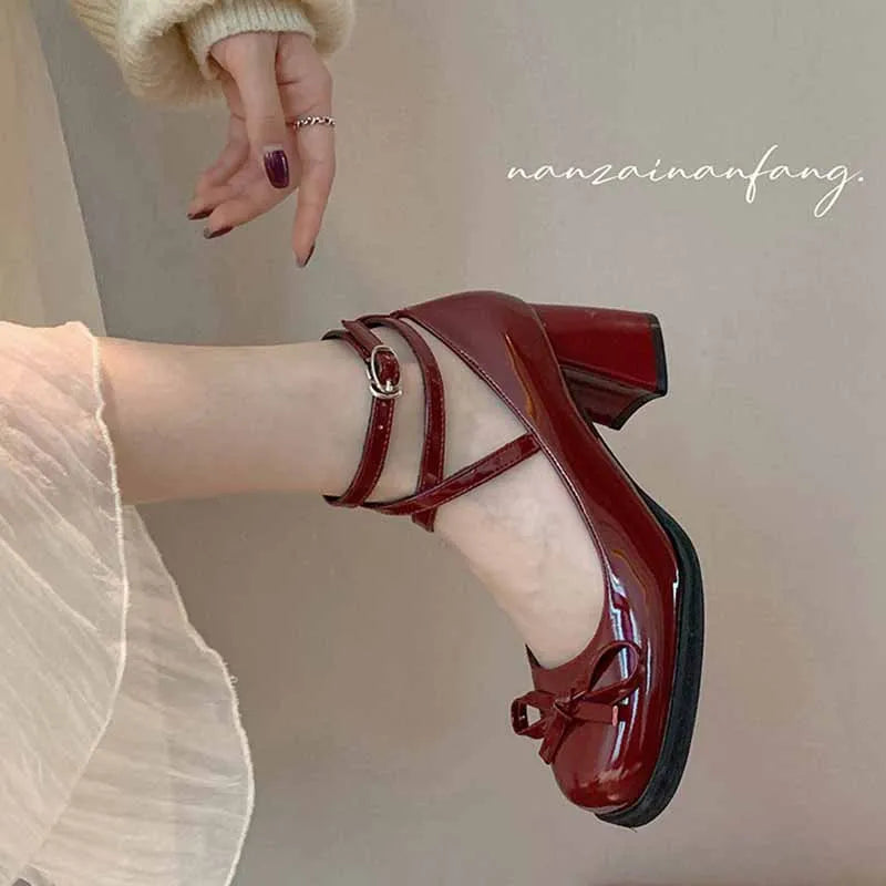LIZAKOSHT INS Red Mary Janes New Women Pumps Thick High Heels Shoes Female Lolita Square Toe Shoes Spring Fashion Party Woman Shoes
