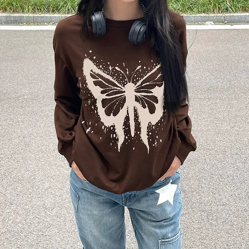 LIZAKOSHT  -  Instagram Street Personalized Butterfly Print Loose Sweater Coat Women's Wear