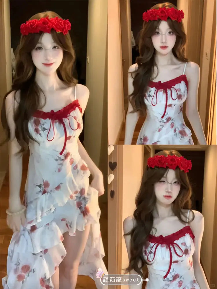 LIZAKOSHT - Japan Irregular Dress Sweet Kawaii Vintage Cake Dress Women Casual Lace Floral Bow Dress Summer Evening Party Chic