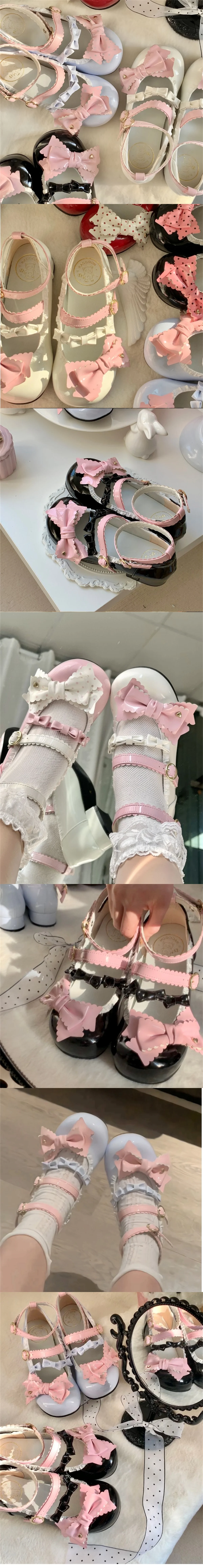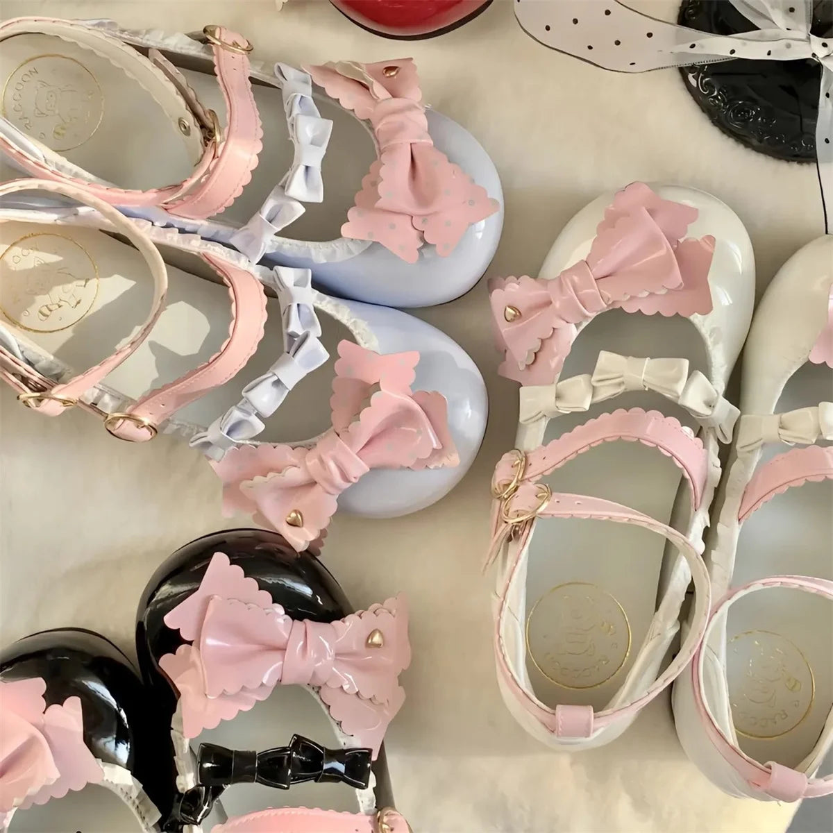 LIZAKOSHT - Japanese Kawaii College Style Sweet Lolita Girls Shoes Mary Jane Dot Love Bowknot Round Head Loli 3-5cm PU Low Heel Shoes