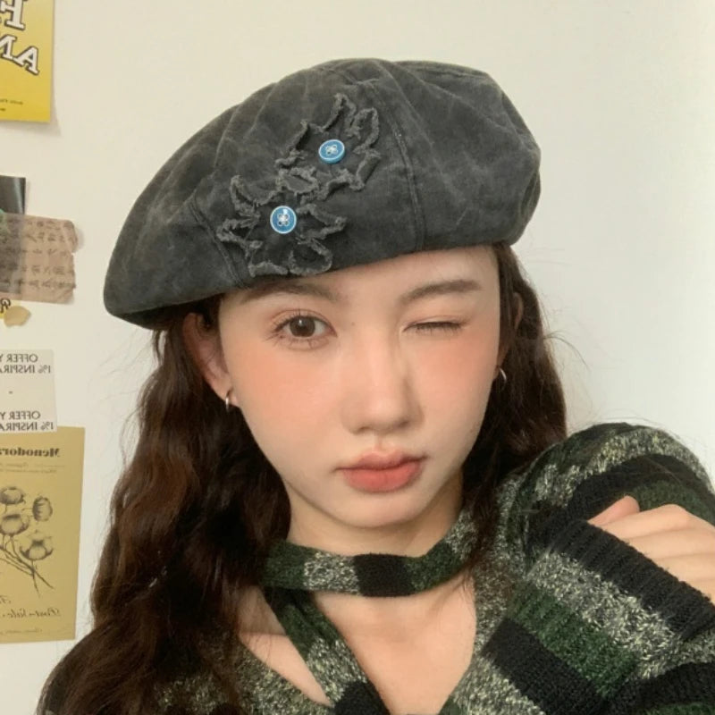 Lizakosht Japanese Retro Flower Patch Beret Spring and Summer Travel Sunscreen Versatile Model Thin Cute Painter Caps Woman's Berets
