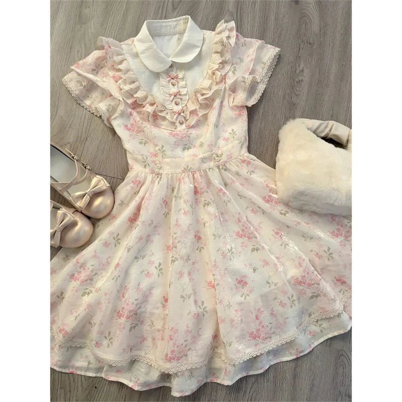 LIZAKOSHT  -  Kawaii Floral Mini Dress Women Japanese Lolita Cute Bow Ruffles Patchwork Dresses Summer Korean Fashion Bodycon A Line Vestidos