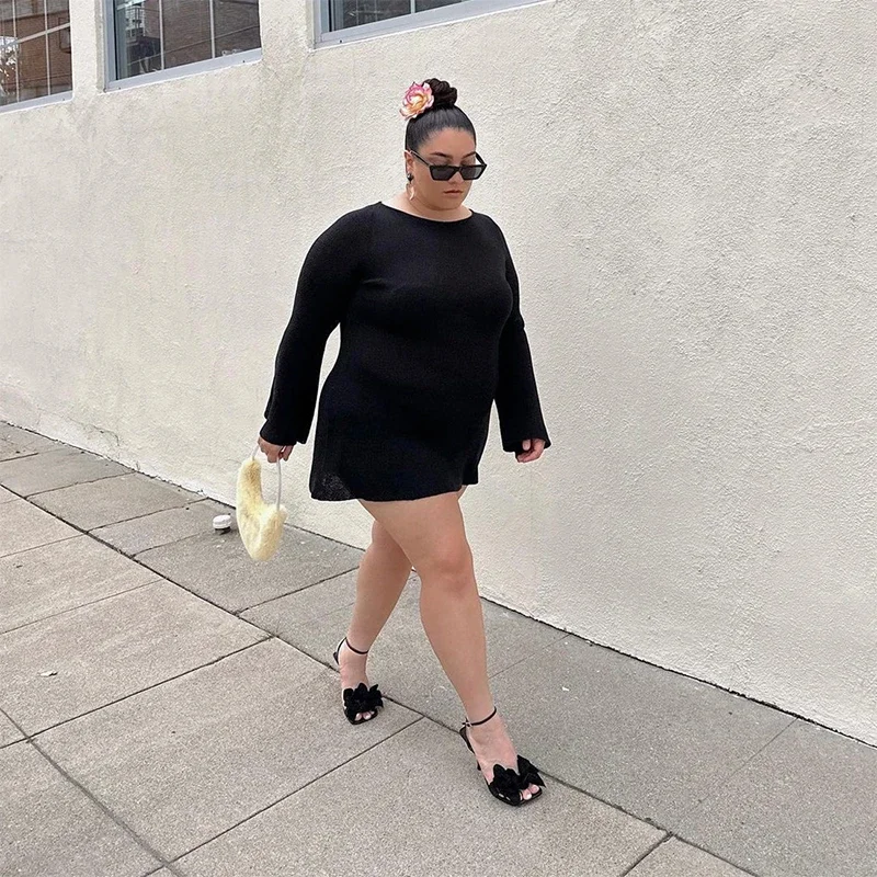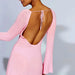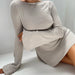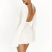 LIZAKOSHT - Knitted Lace Up Mini Dress Women Elegant Sleeve O-neck Backless Long Flare Solid Party Dresses 2024 Autumn Fashion Lady Robes