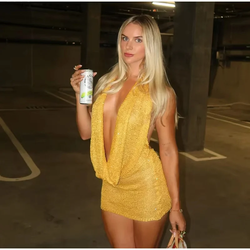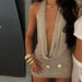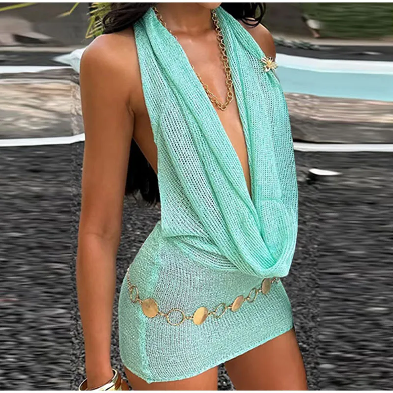 LIZAKOSHT  -  Knitted Short Dress For Women Sleeveless Hollow Out Backless Halter Mini Sequined Dresses 2025 Summer Chic Ladies Party Clothes