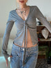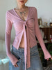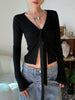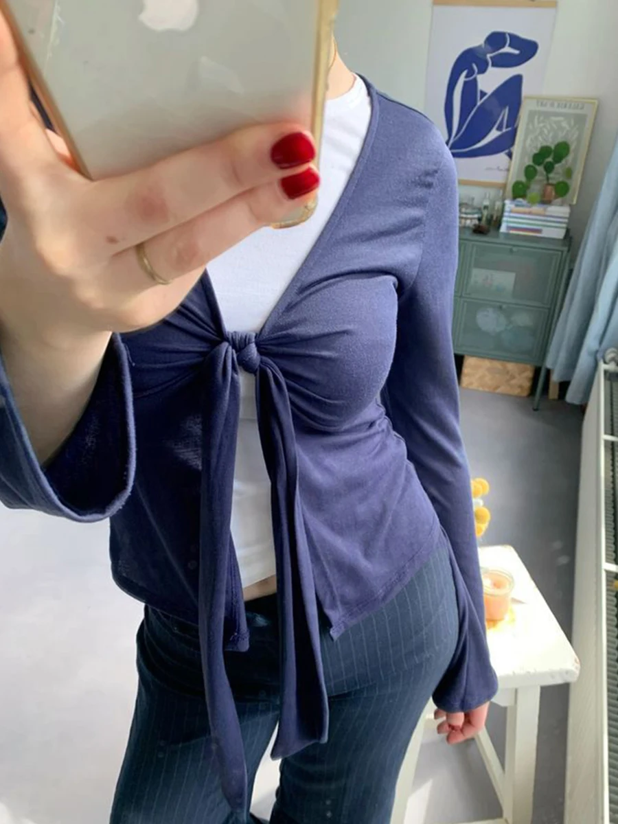LIZAKOSHT - Knot Long Sleeve T-shirt Autumn Sexy V-neck Slim Tee Shirts Female Casual Simple Solid All-match Woman's Tshirts New Chic Tops