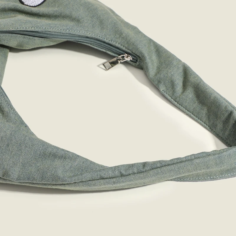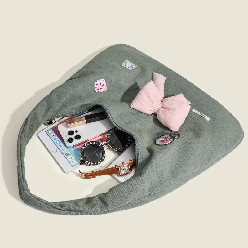 LIZAKOSHT - Korean Casual Half Moon Denim Bags For Women Luxury Designer Handbag Purses 2024 New In Appliques Letter Badge Underarm Shoulder
