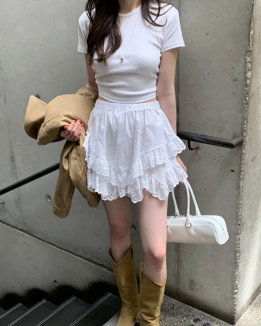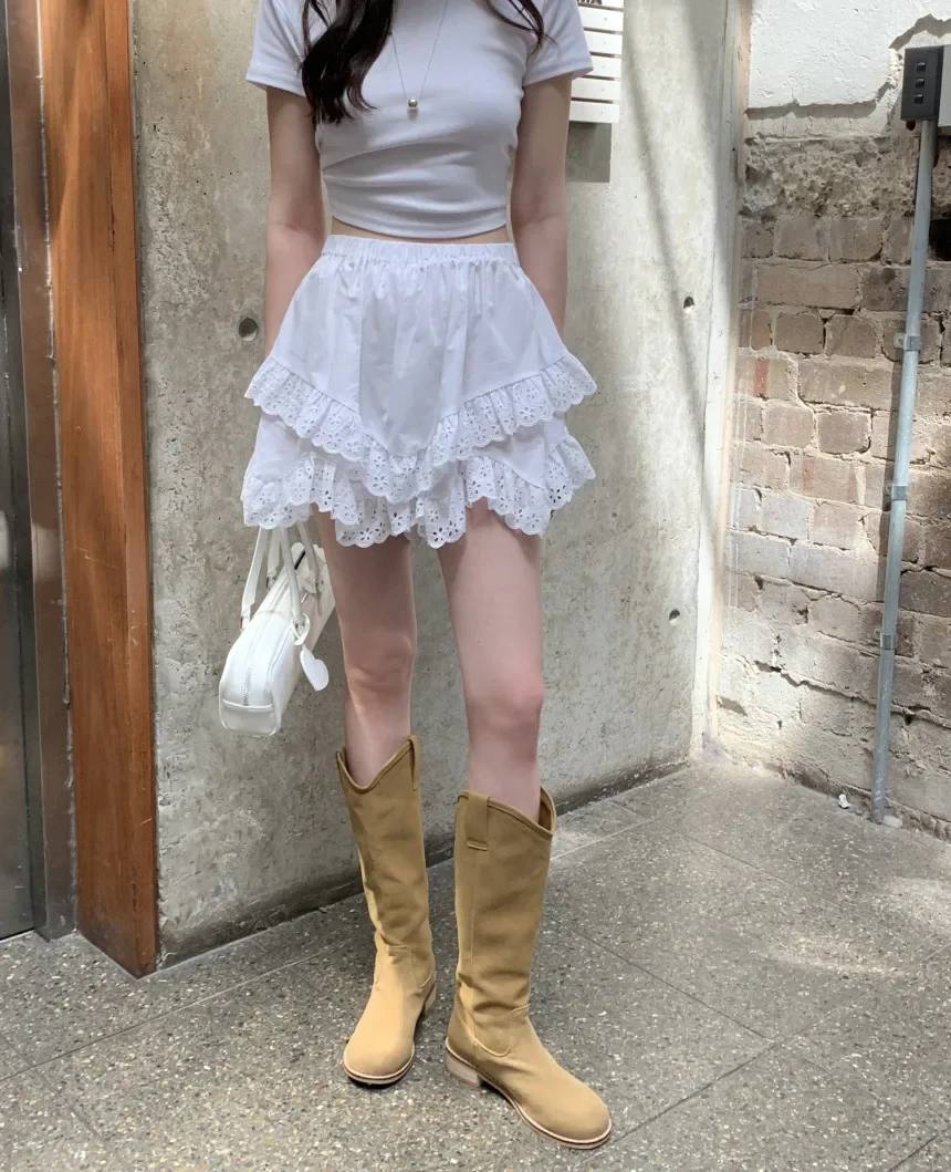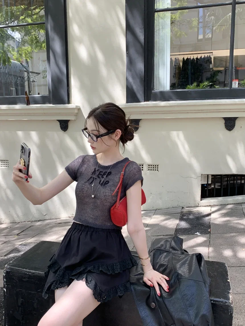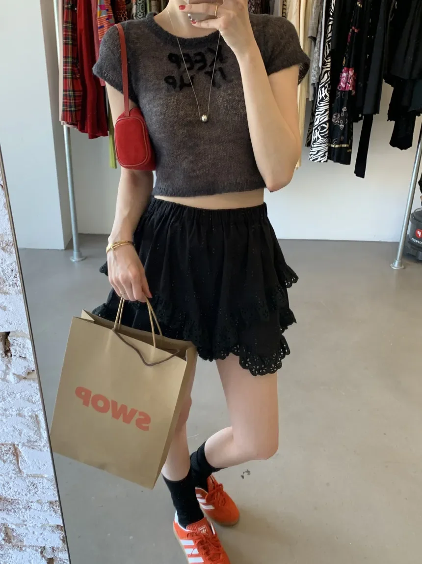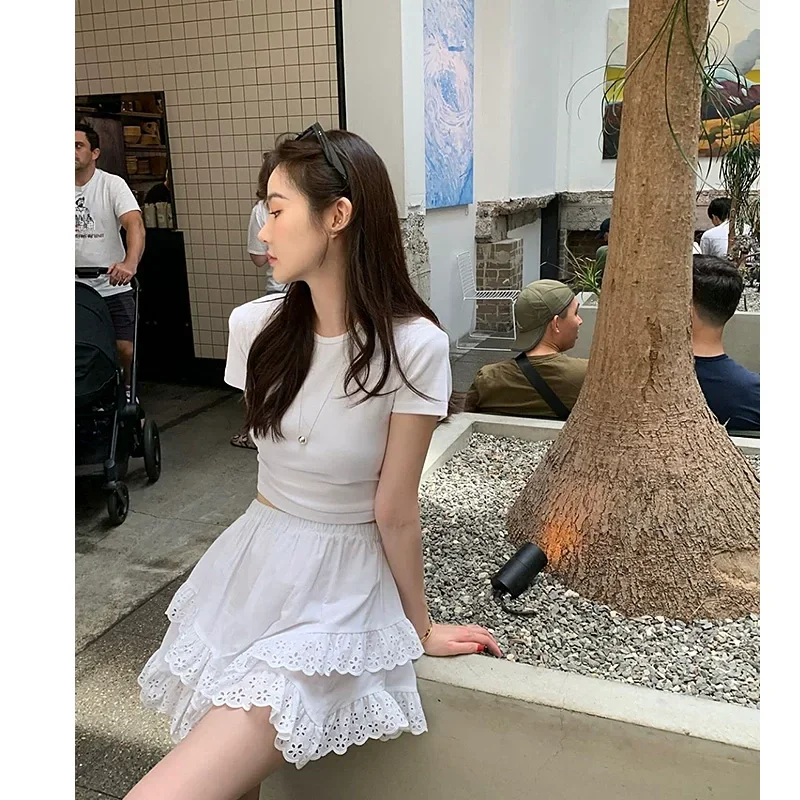 LIZAKOSHT - Korean Chic Kawaii Skirt Women Summer Temperament Elastic Waist Designer Mini Skirt Female Versatile Slimming Lace Skirt 2024