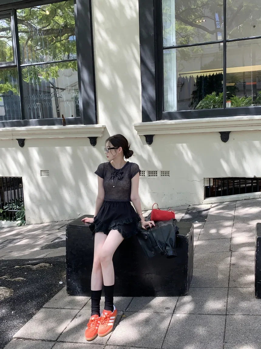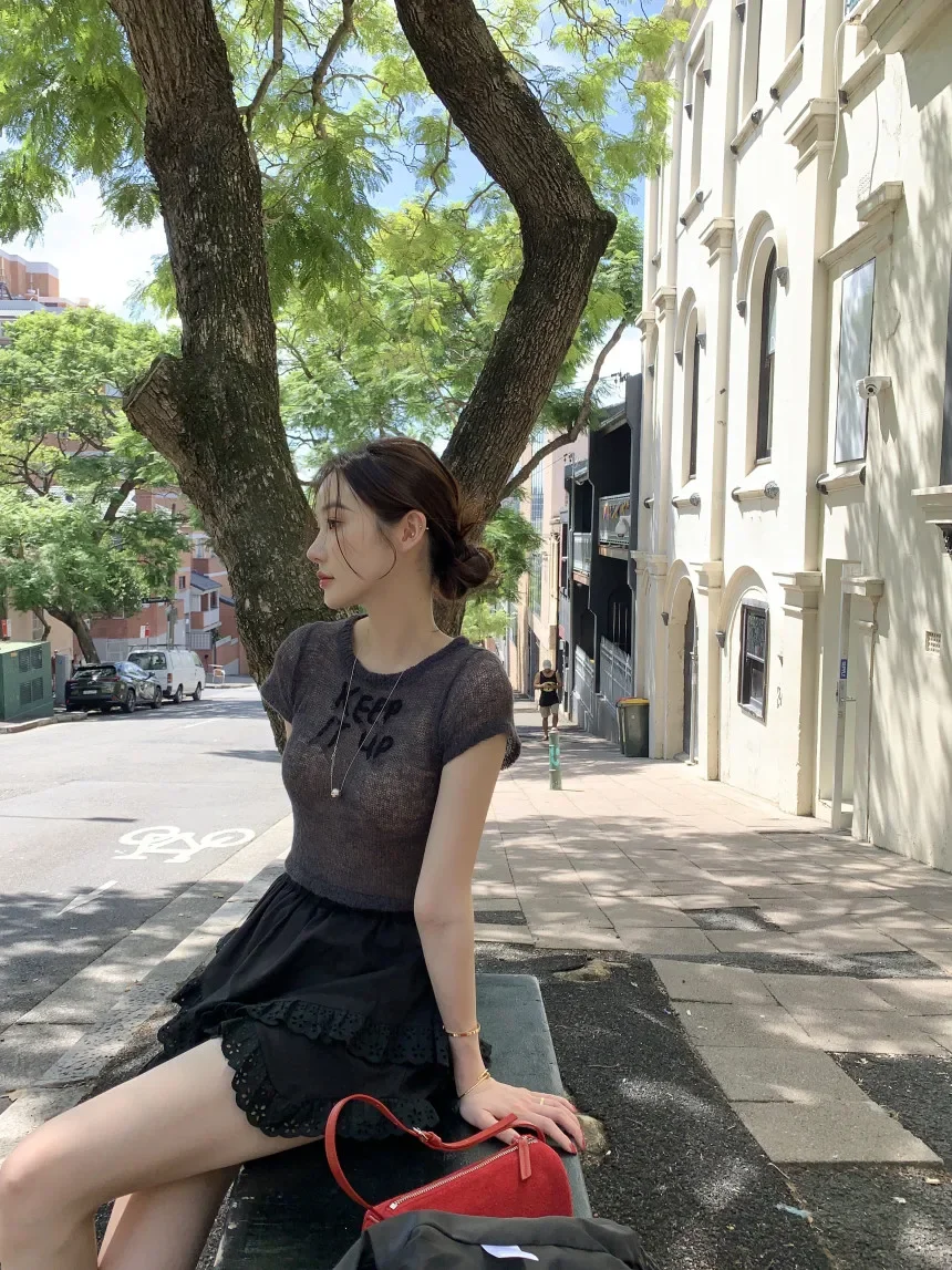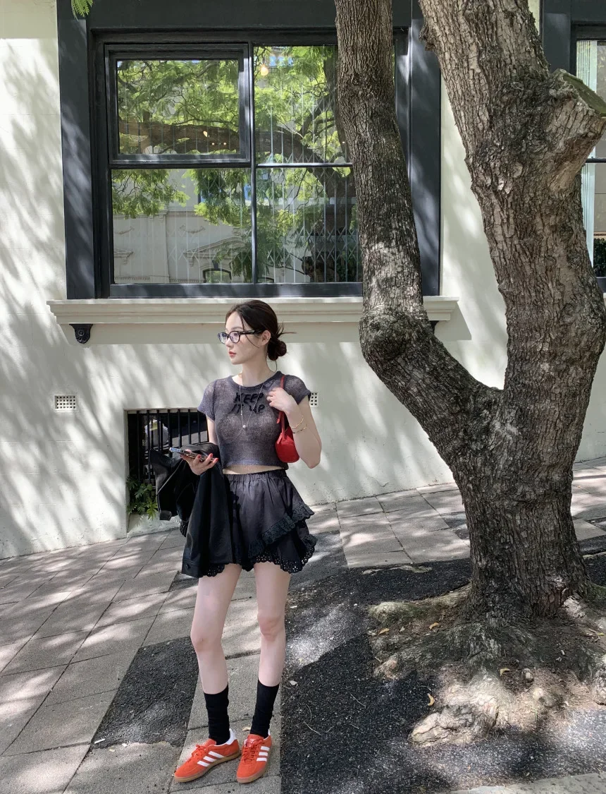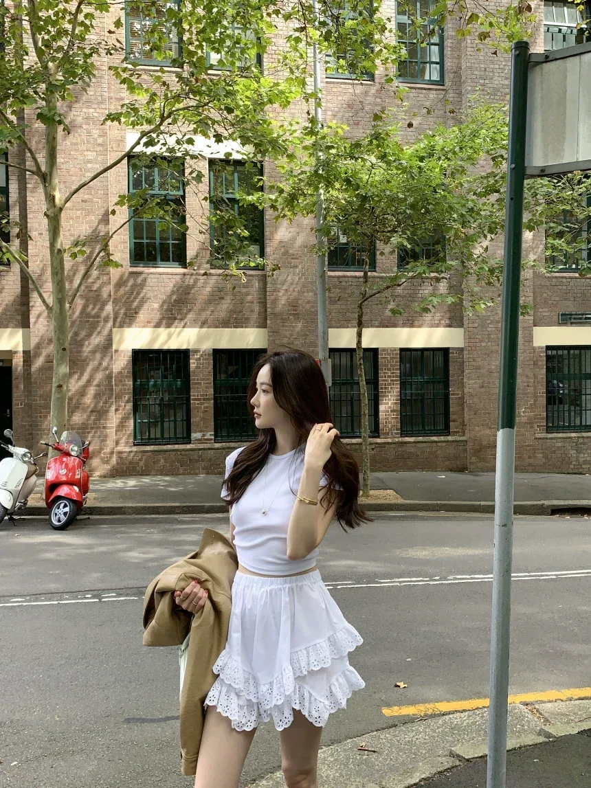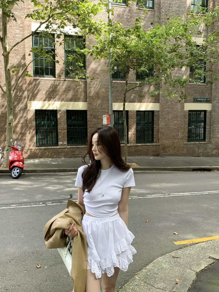 LIZAKOSHT - Korean Chic Kawaii Skirt Women Summer Temperament Elastic Waist Designer Mini Skirt Female Versatile Slimming Lace Skirt 2024
