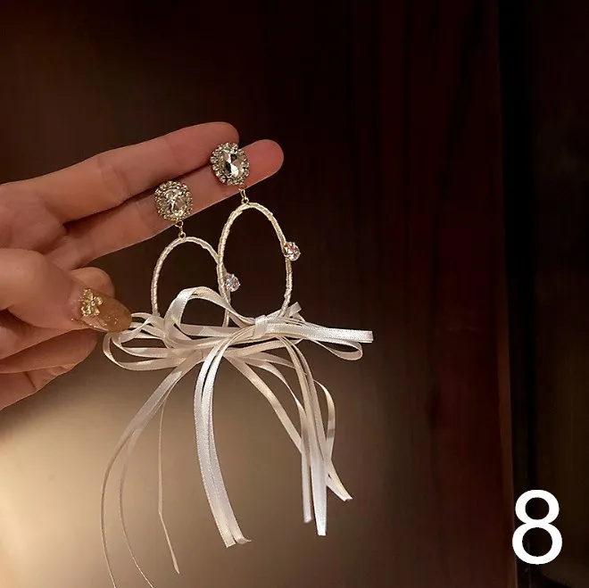 Lizakosht Korean Dangle Drop Earrings Kawaii Cute Women Wholesale Black Tulle Yarn Rhinestone Bow Knot Tie Fall Winter Fashion Jewelry
