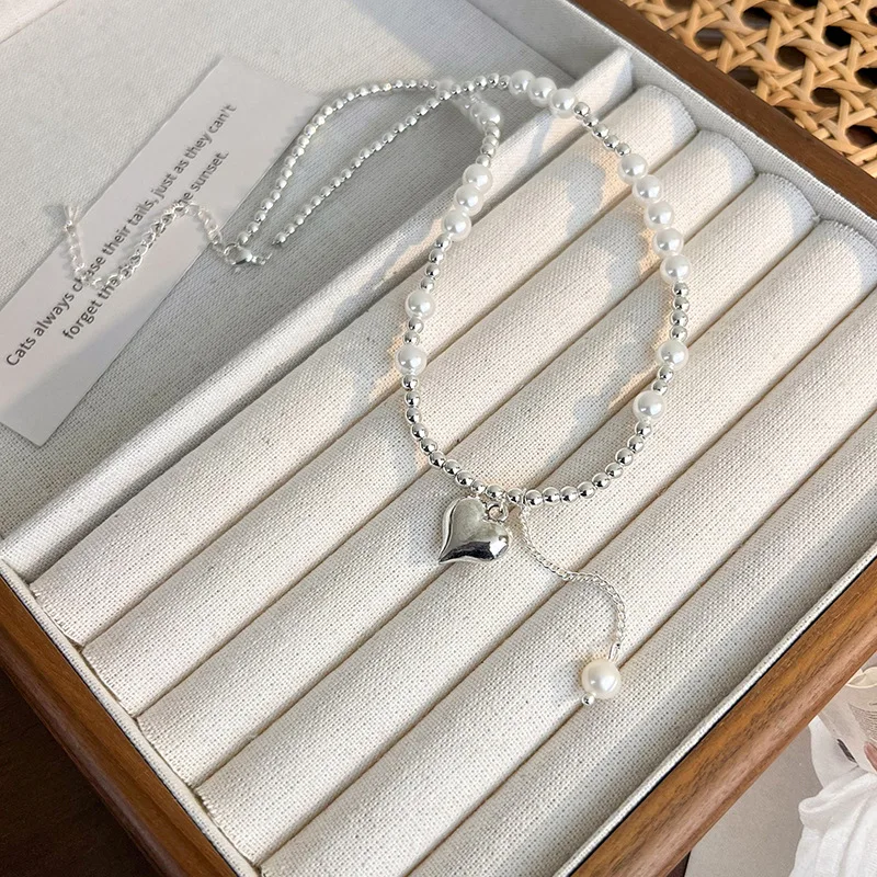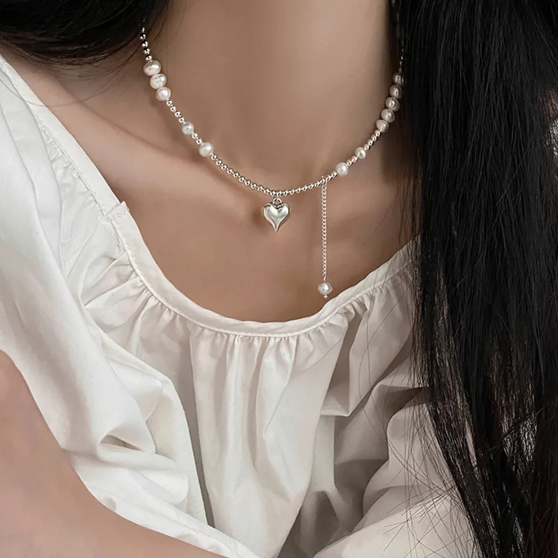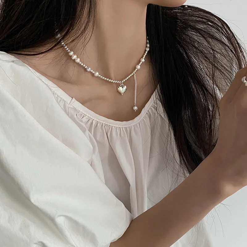 Lizakosht Korean Fashion Pearl Stitching Love Pendant Necklace For Women Girl Sweet Cool Spicy Girl Collarbone Wedding Party