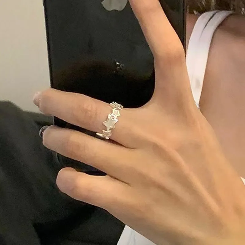 Lizakosht Korean Fashion Y2K Blue Pink Enamel Star Rings for Women Girls Cool Sweet Irregular Star Open Ring Party Gifts Jewelry