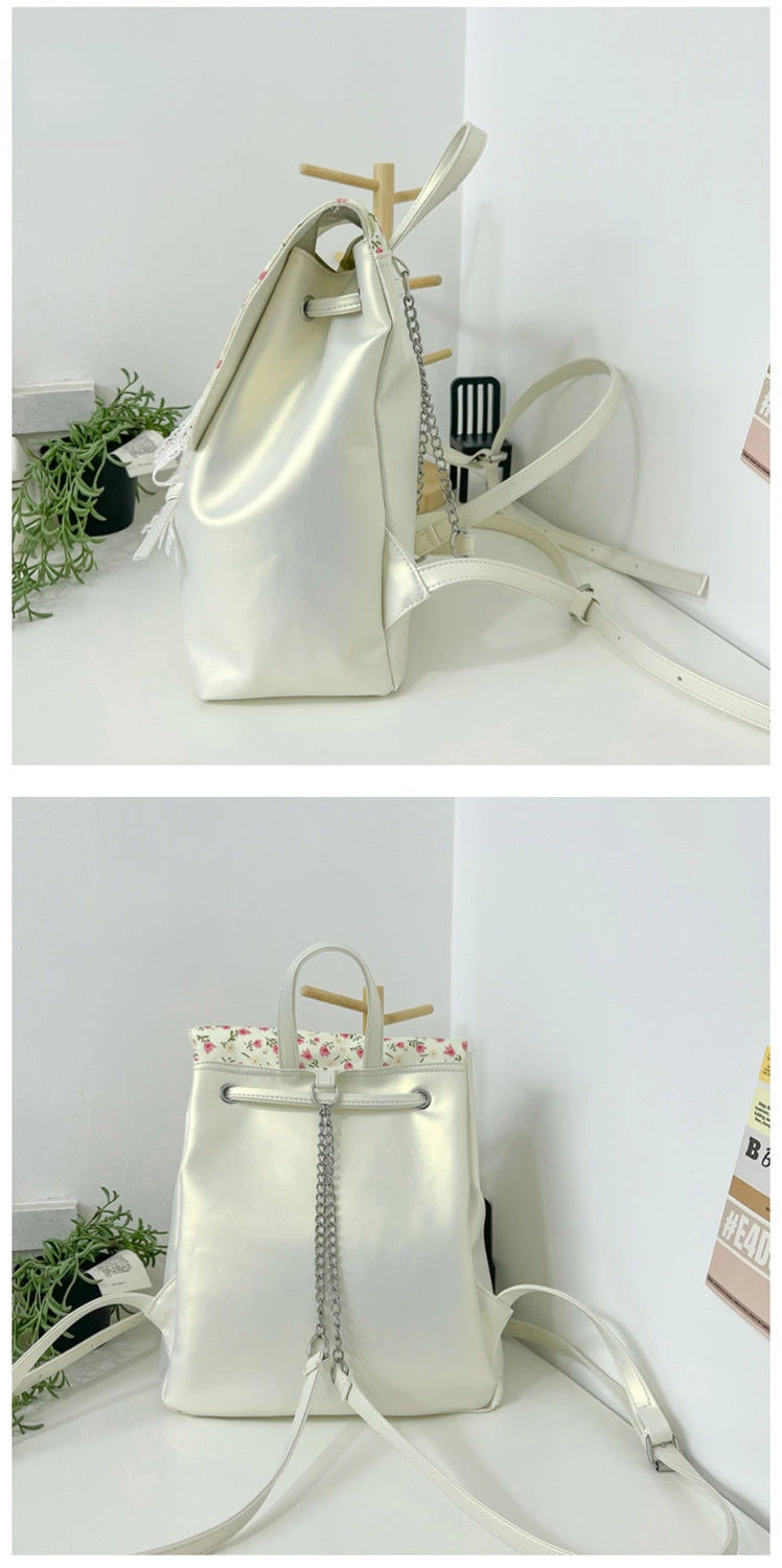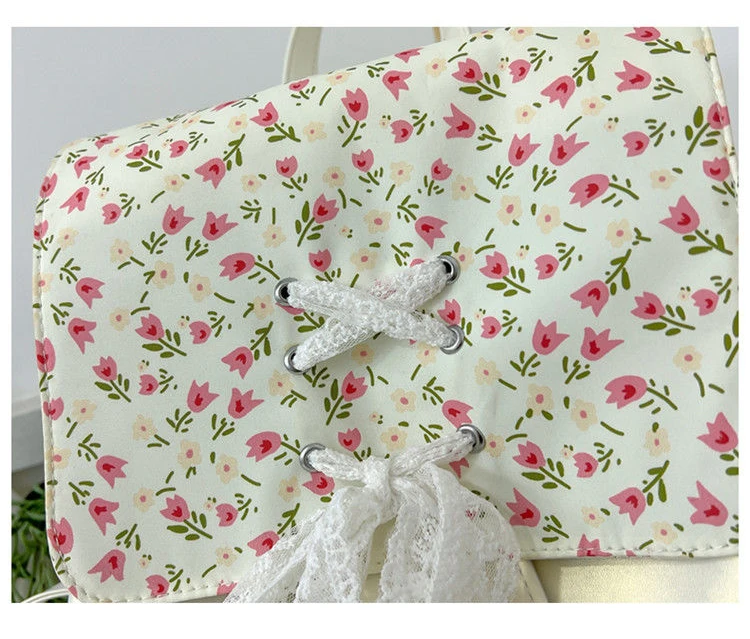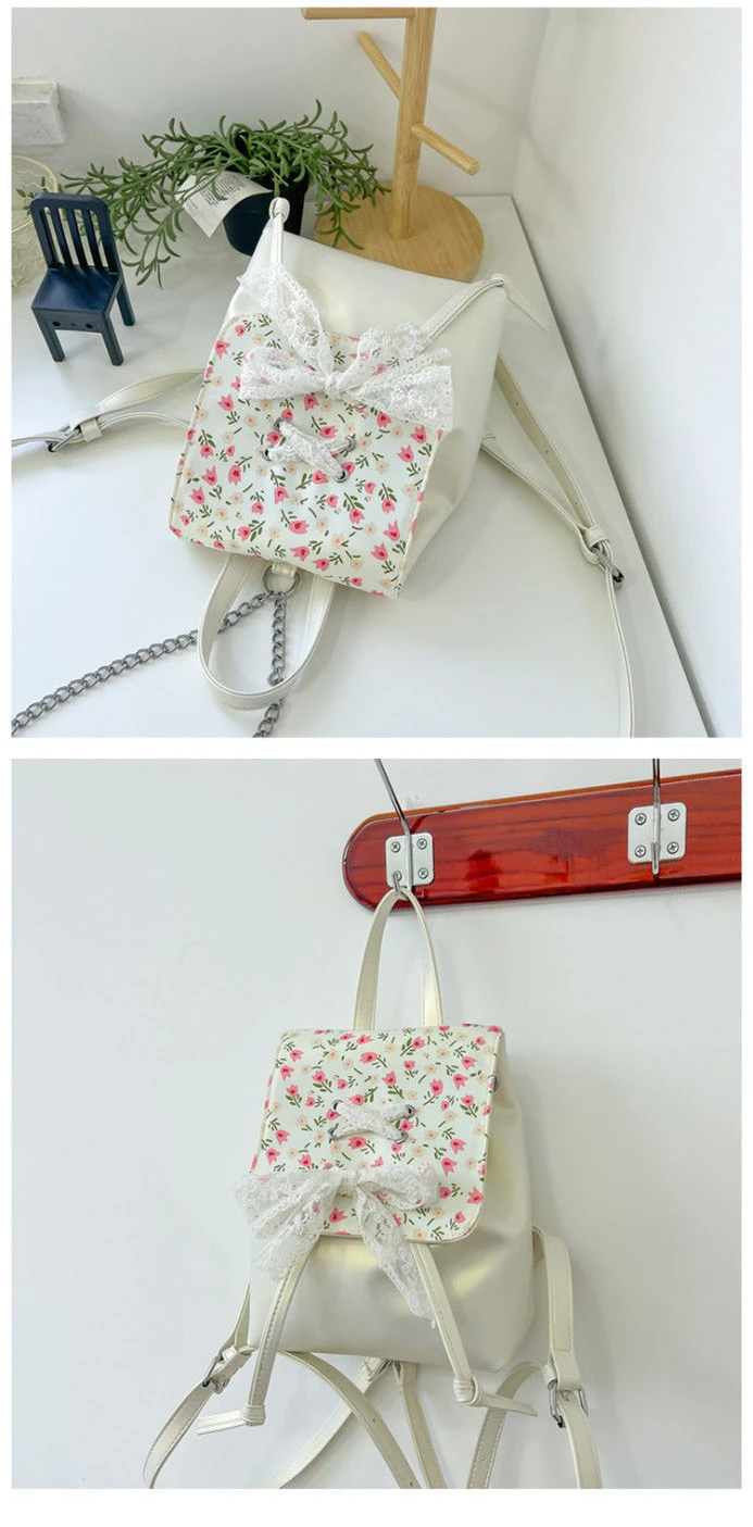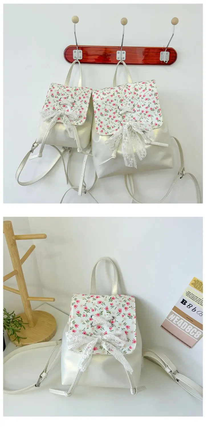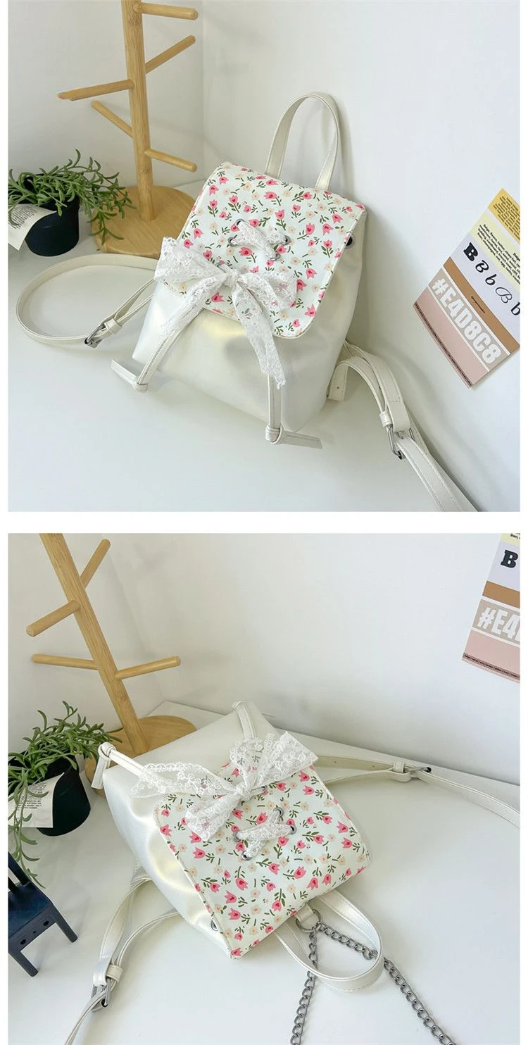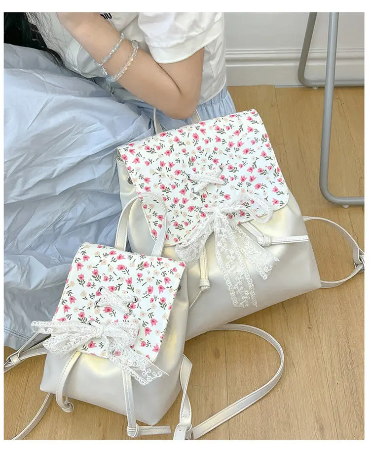 LIZAKOSHT  - Korean Girls Fashion Flower Print Backpack Women Students Kawaii Bow Bandage Schoolbags Sweet Y2k Aesthetic All Match Backpacks