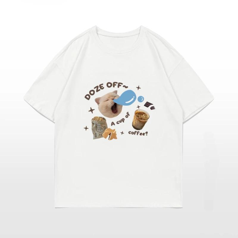 LIZAKOSHT  -  Korean Kawaii Cat Print T Shirt Women Oversized Streetwear Graphic Tees Y2k Kitten Cute Funny T-shirts Harajuku Female Clothing
