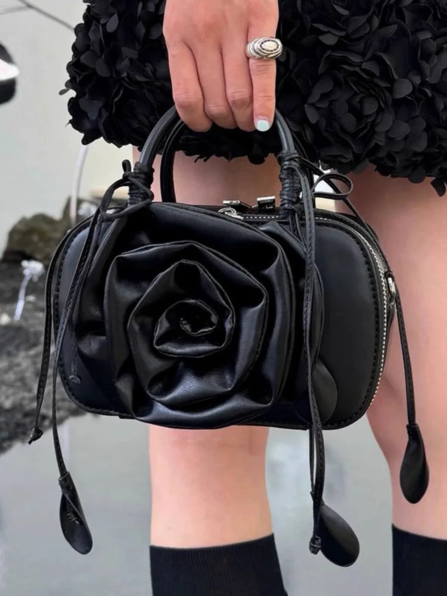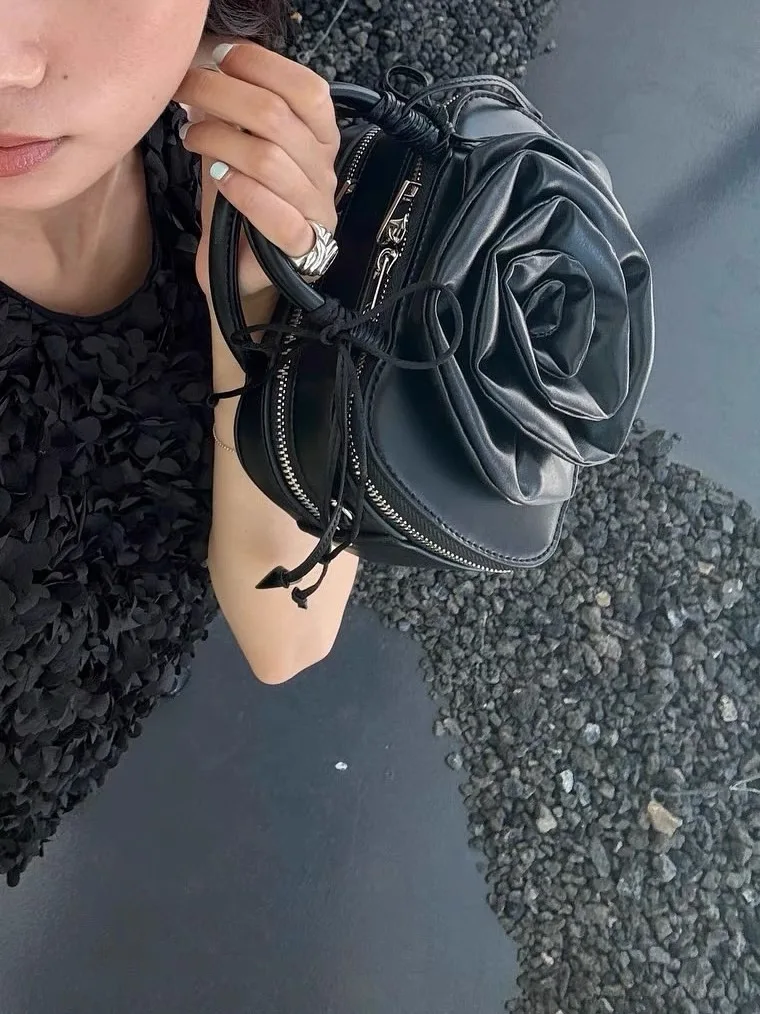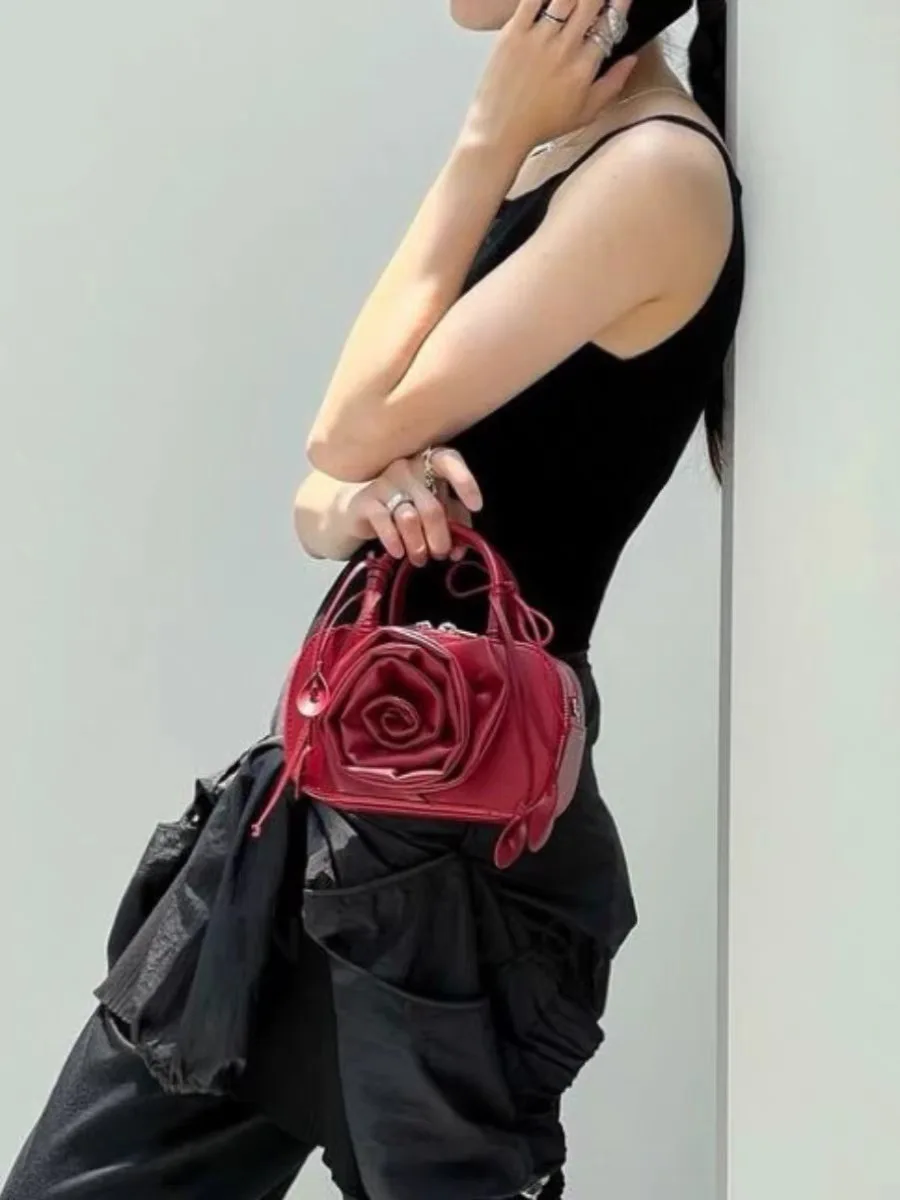 LIZAKOSHT - Korean Niche Design Rose Flower Handbag New Korean Style Single Shoulder Crossbody Small Square Bag