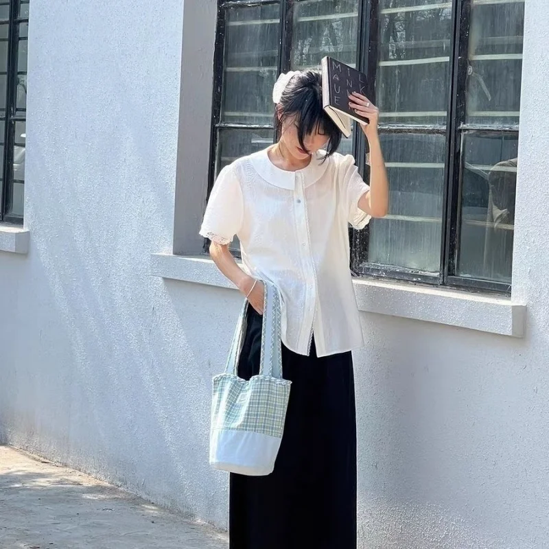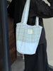 LIZAKOSHT - Korean Sweet Blue Plaid Bucket Bag Handbag Tote Women Casual Shoulder Bag