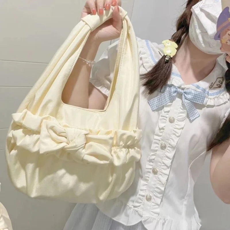 LIZAKOSHT - Korean Sweet Bow Pleated Lolita Spring Summer Fashion Handbag Women Shoulder Bag All Match