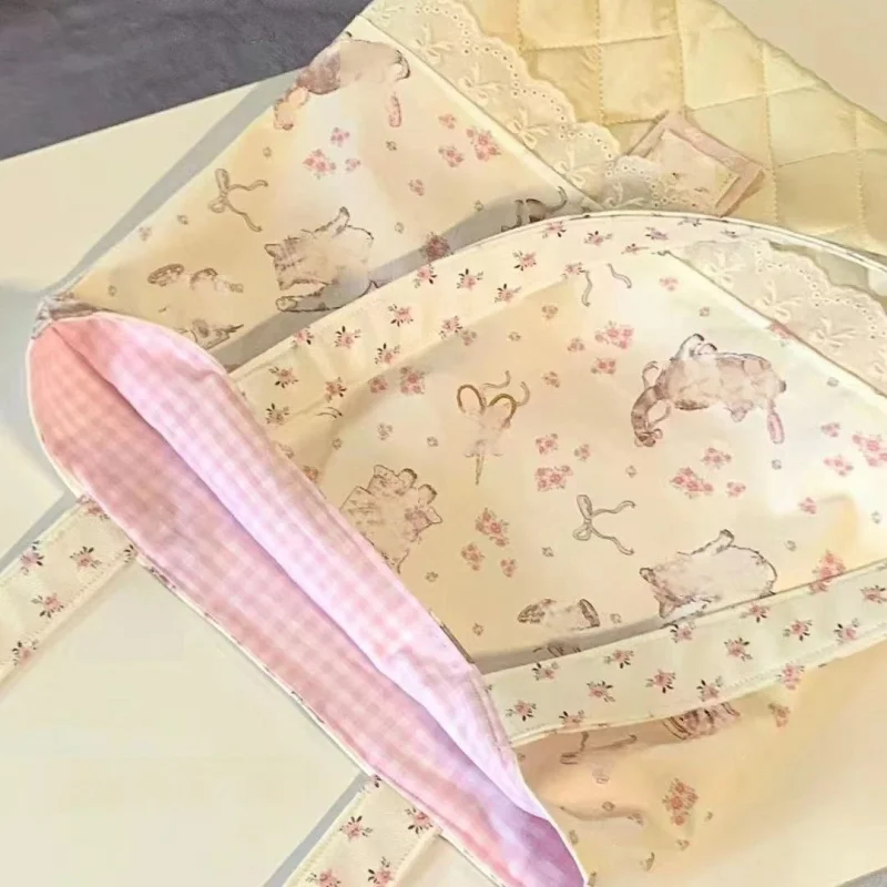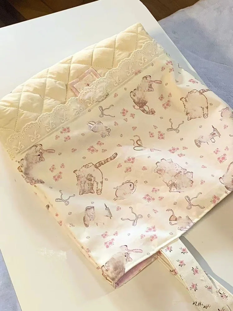 LIZAKOSHT - Korean Sweet Flower Cat Bow Print Handbag Tote Bags Large Capacity Women Commute Shoulder Bag