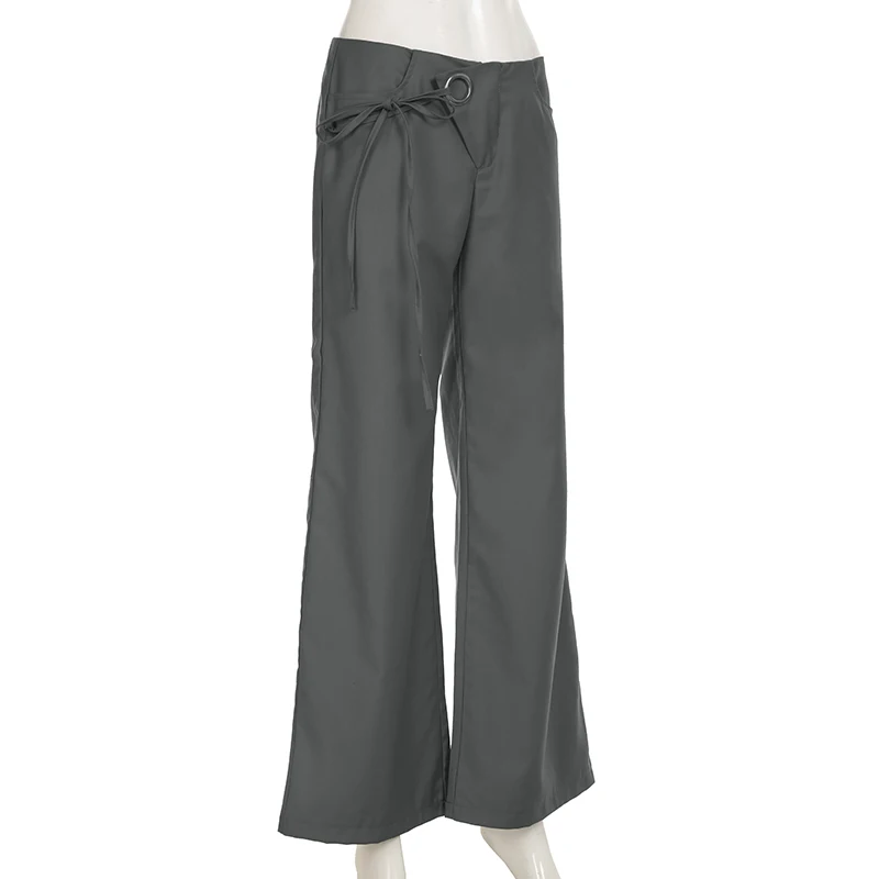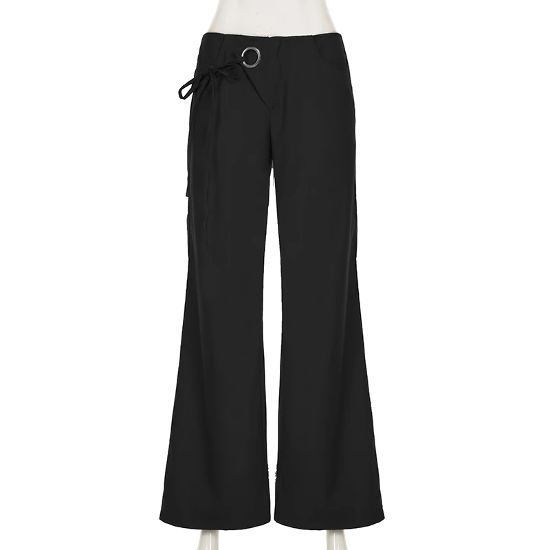 LIZAKOSHT - Lace Up Loose England Style Trousers Fashion Low Waisted Solid Pants Vintage Aesthetic Leisure Bottoms for Women
