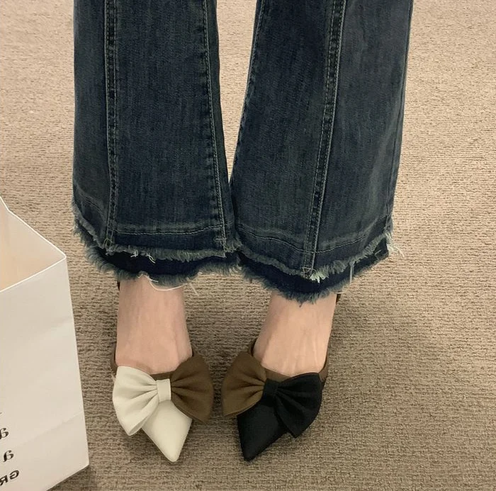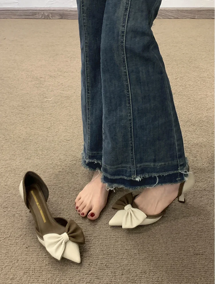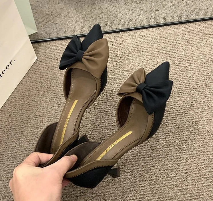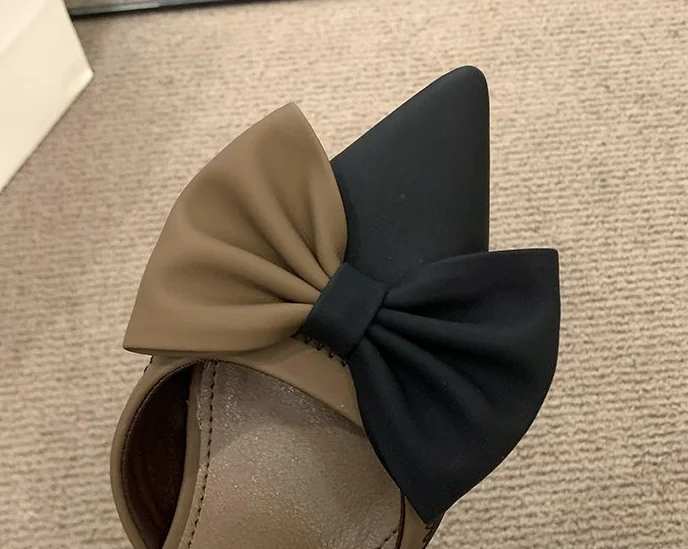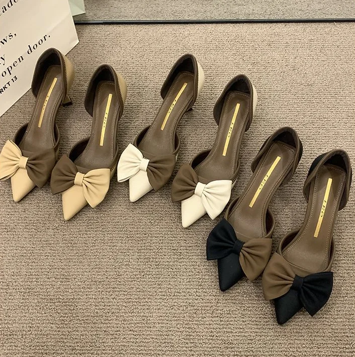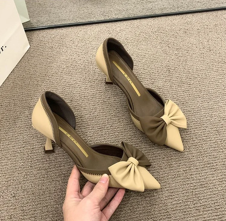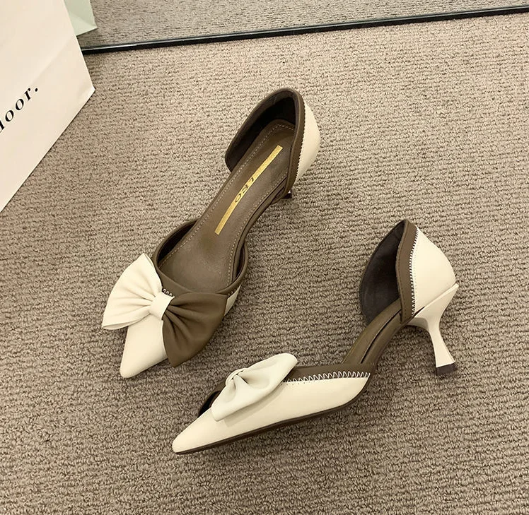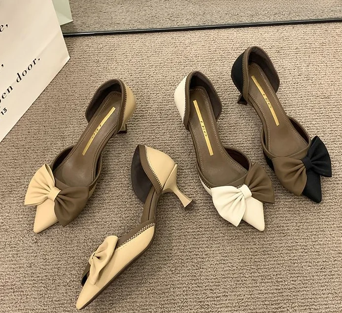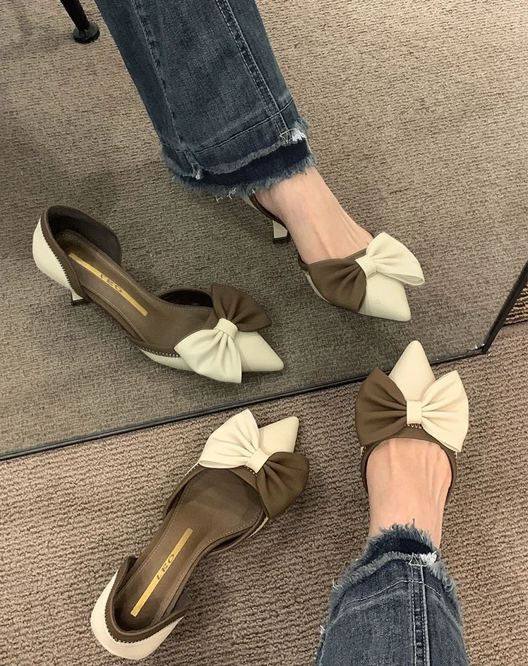LIZAKOSHT - Ladies Shoes Pointed Toe Footwear Leather Summer Stiletto Sandals for Women Closed Beige Vintage Thin Heels Vip H Shoe F Or